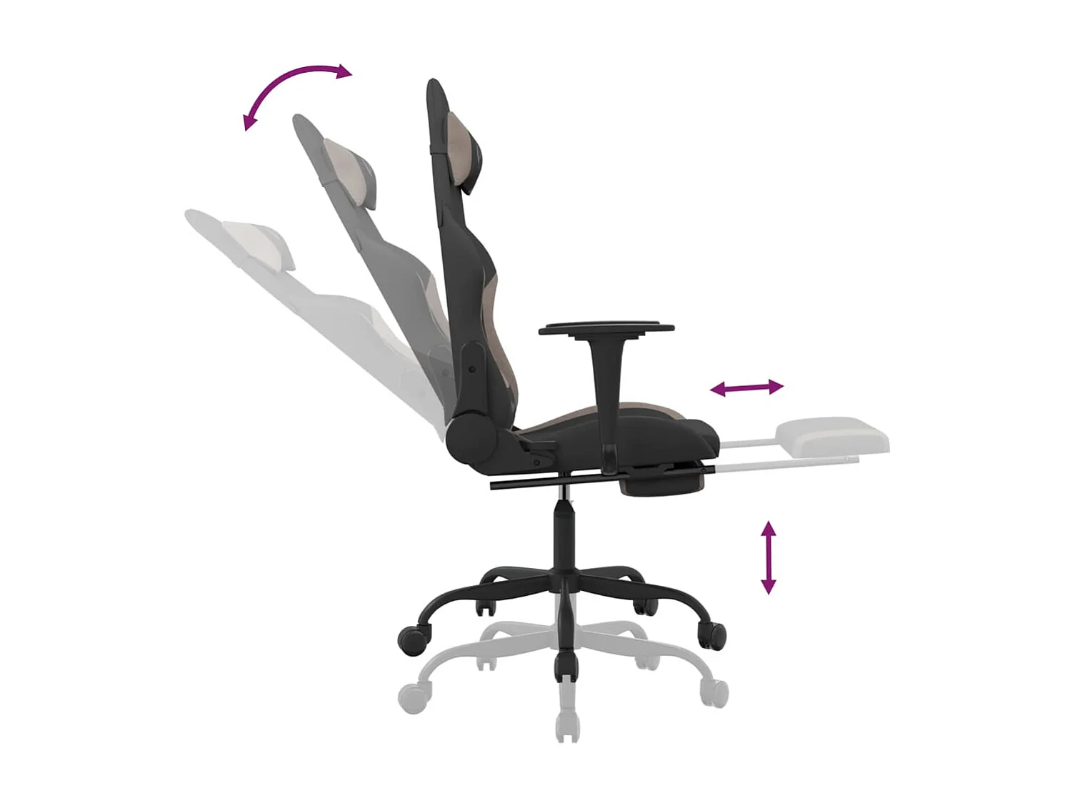 Sedia da Gaming Massaggio e Poggiapiedi Tessuto Nero e Tortora