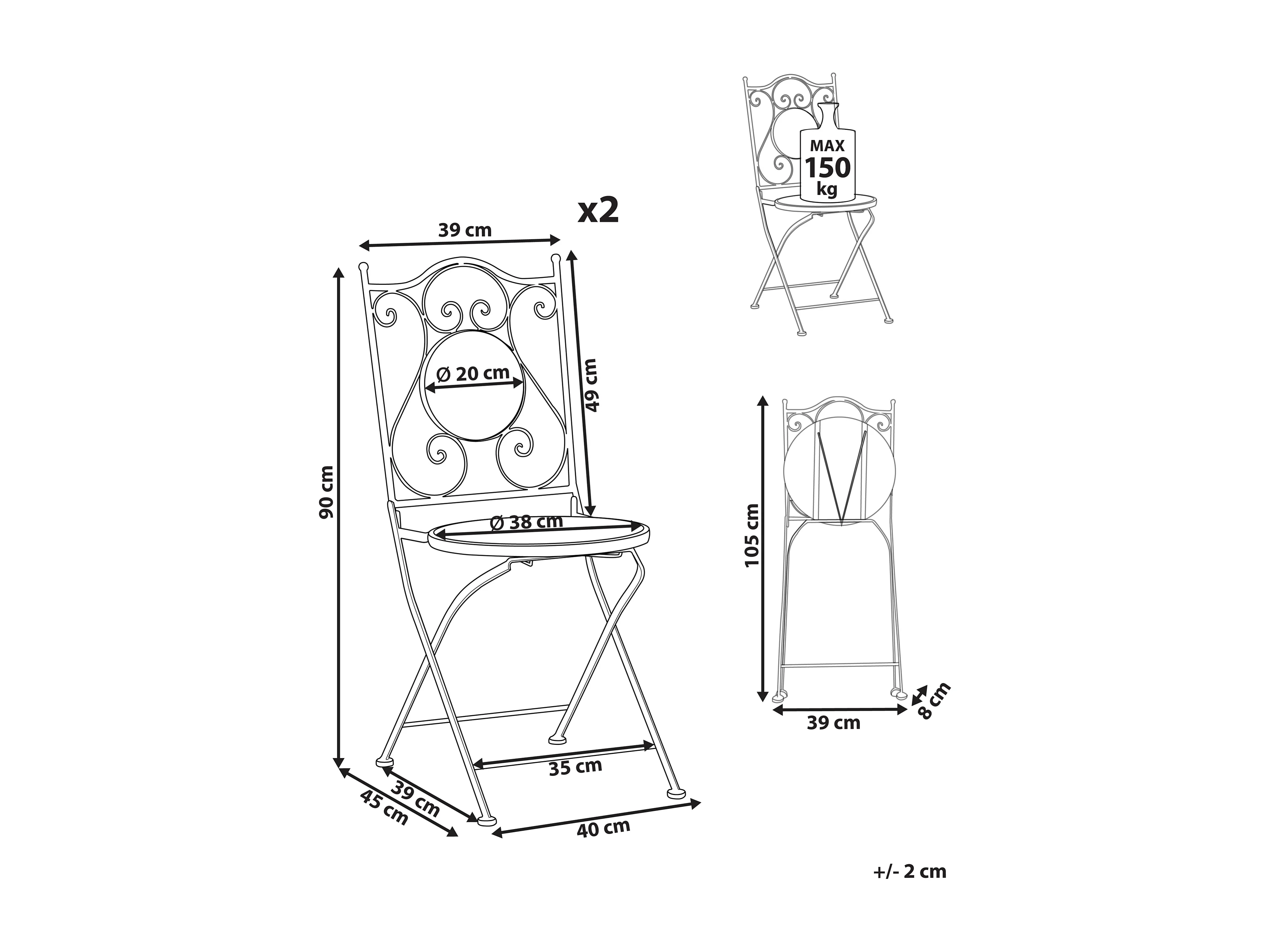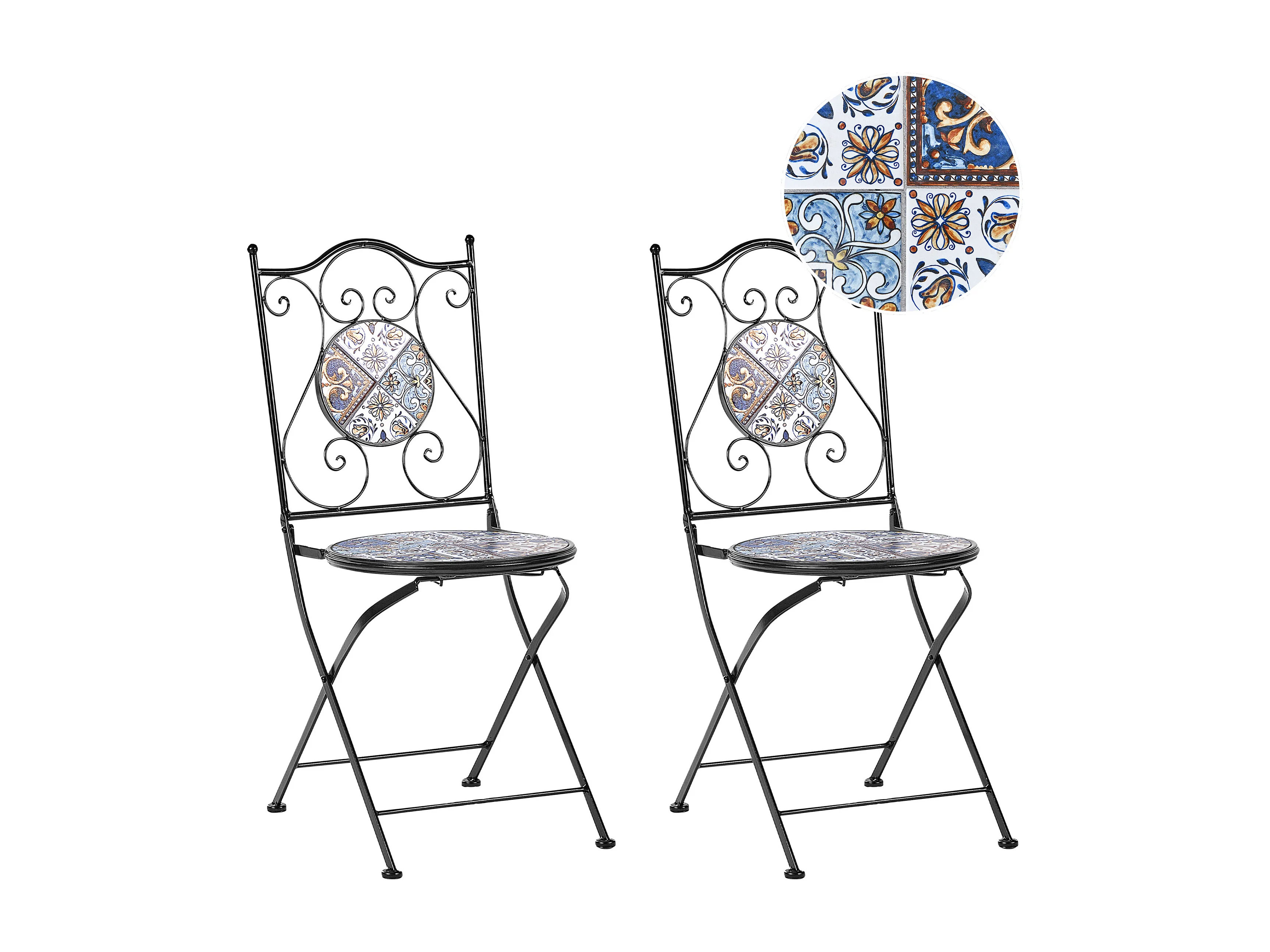 Set di 2 sedie da giardino COMISO Pieghevole Metallo Nero/ Bianco