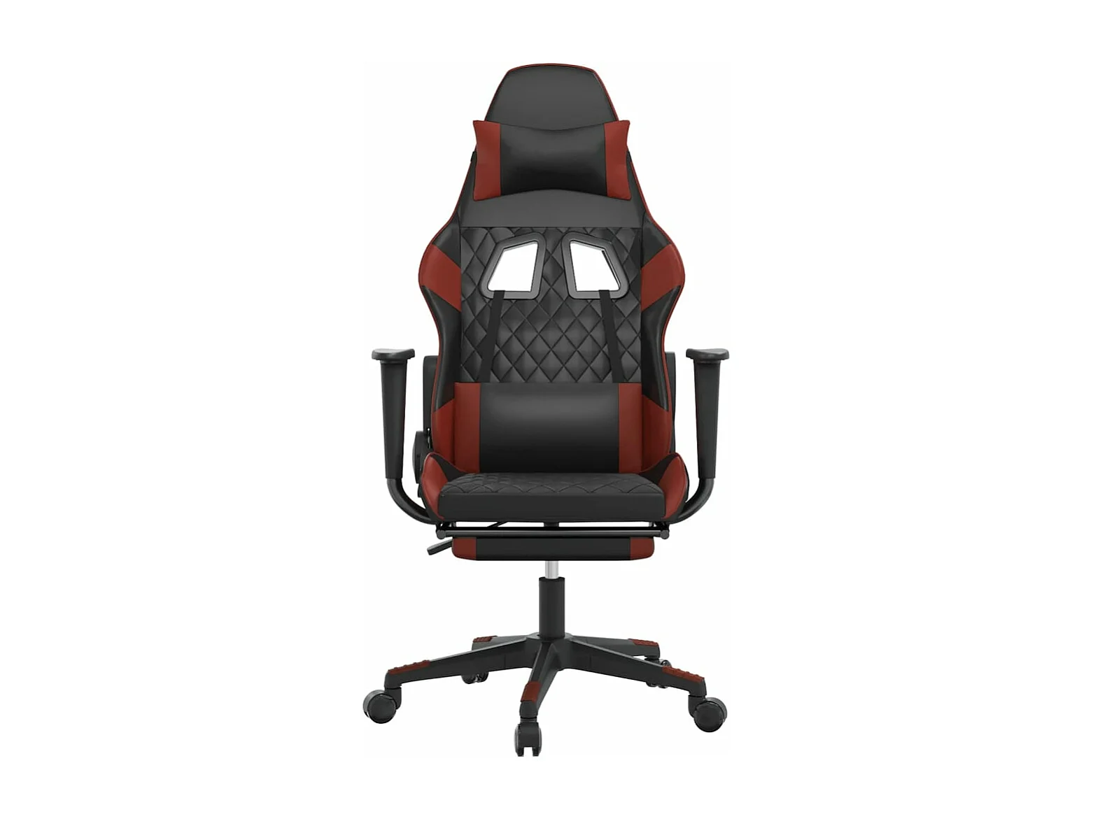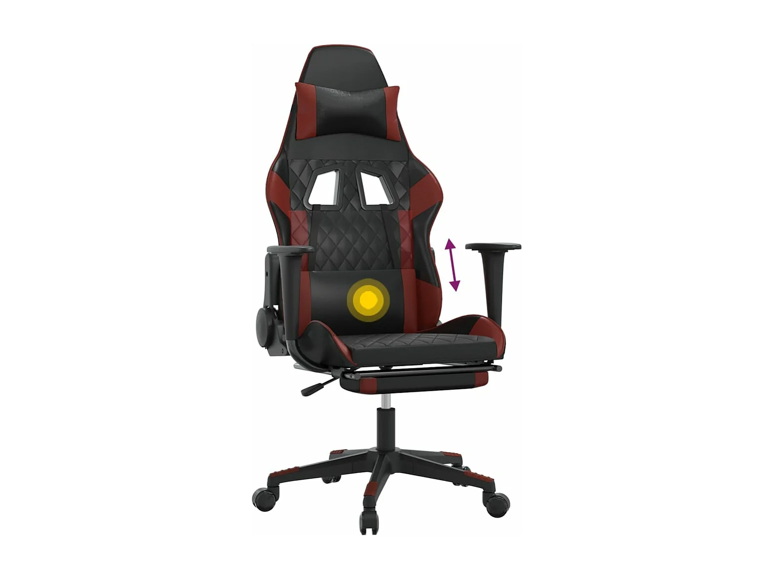 Sedia da gioco massaggiante con poggiapiedi in ecopelle nera e bordeaux