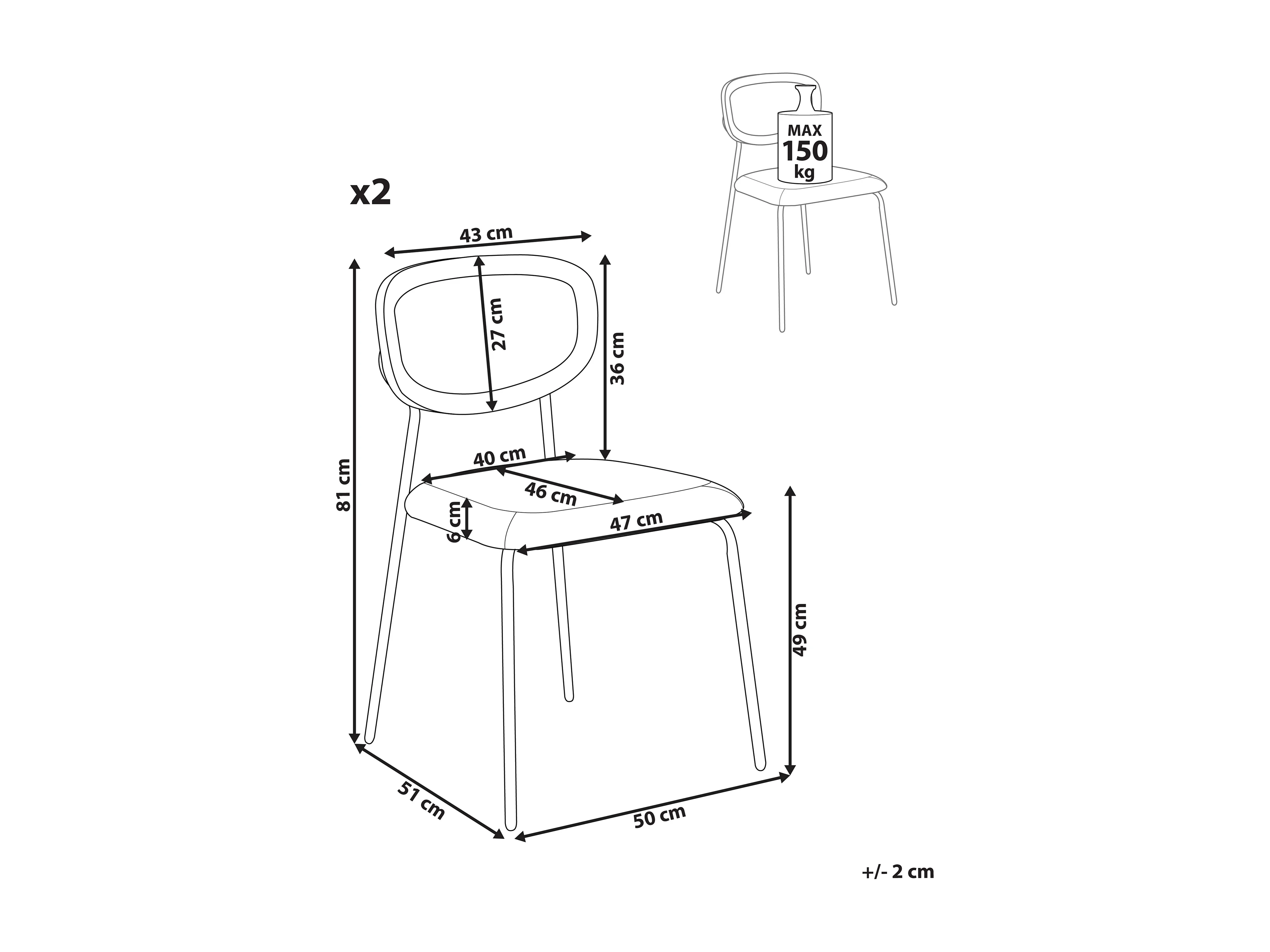 Set di 2 sedie da pranzo L58 cm - CAPITAN