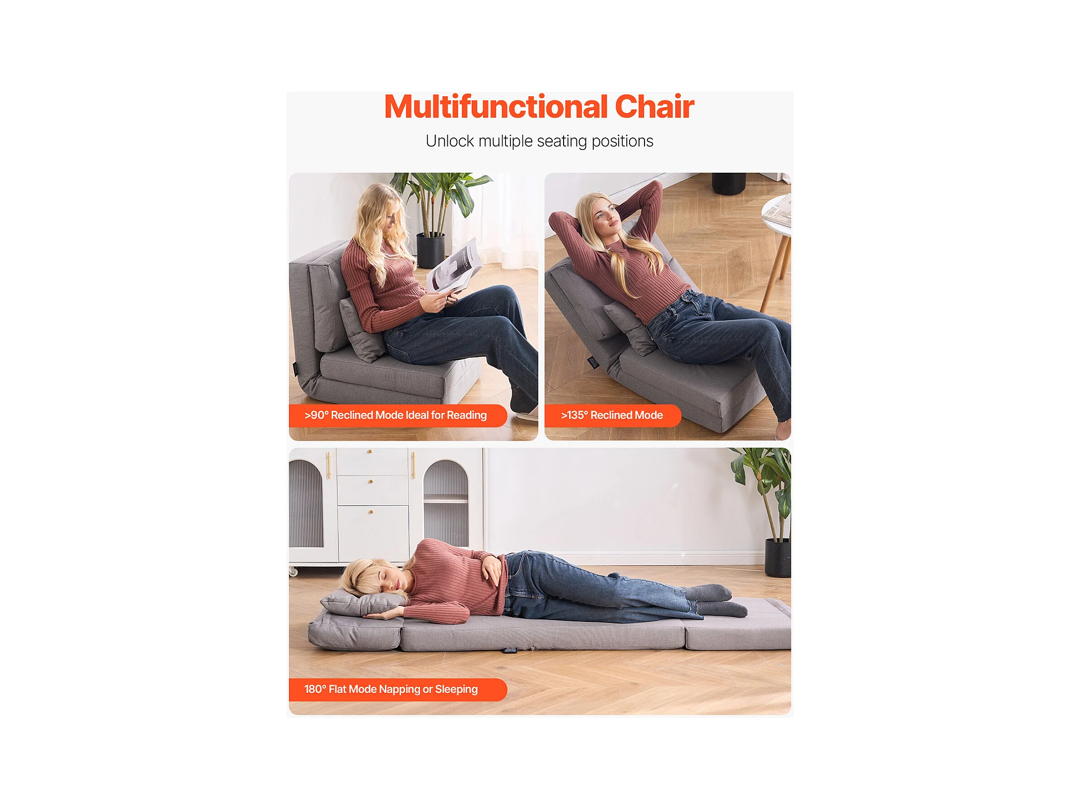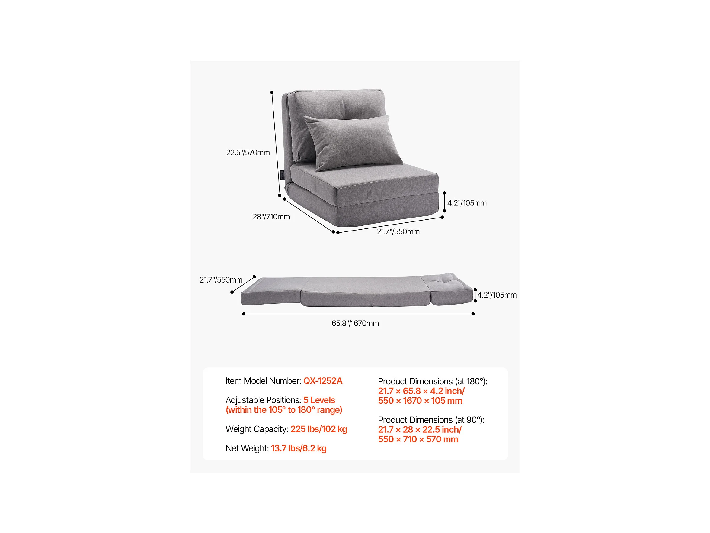 Sedia da Terra SucceBuy Sedia da Terra Trasformabile con 5 Posizioni Regolabili, Divano Letto Imbottito con Schienale Regolabile, Struttura in Metallo e Cuscino
