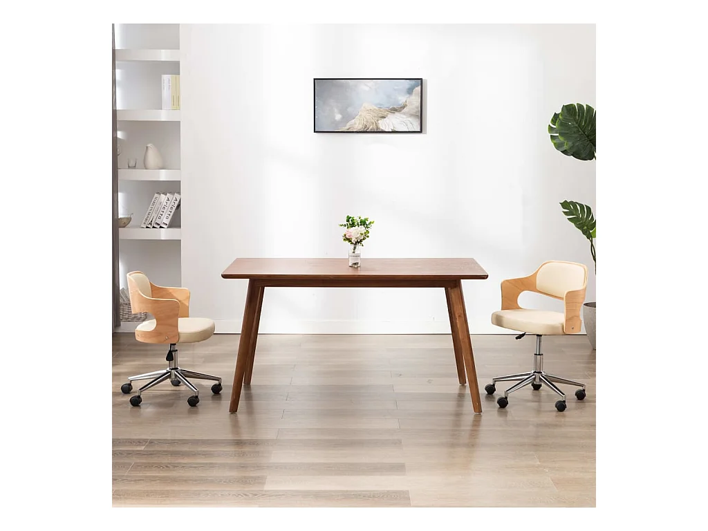 Sedia da Ufficio Girevole Crema in Legno Piegato e Similpelle