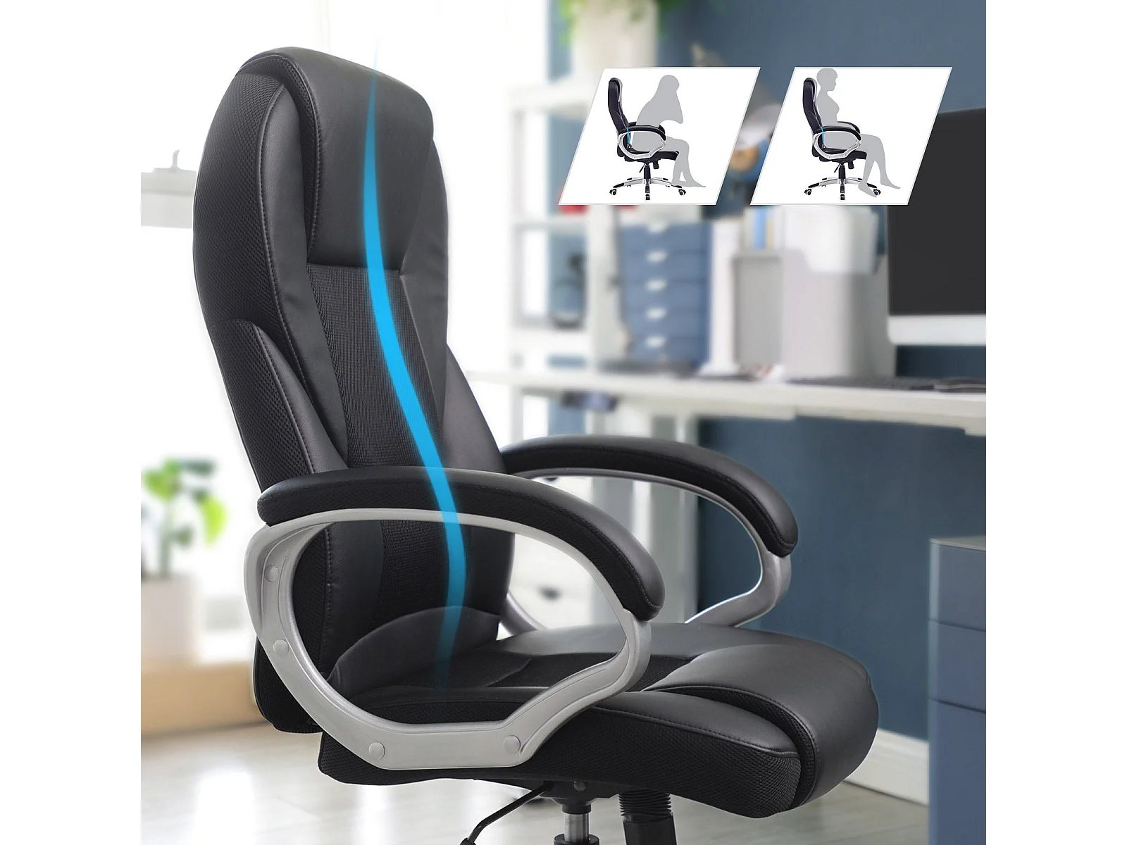 Poltrona da Ufficio Reclinabile Nera in Similpelle