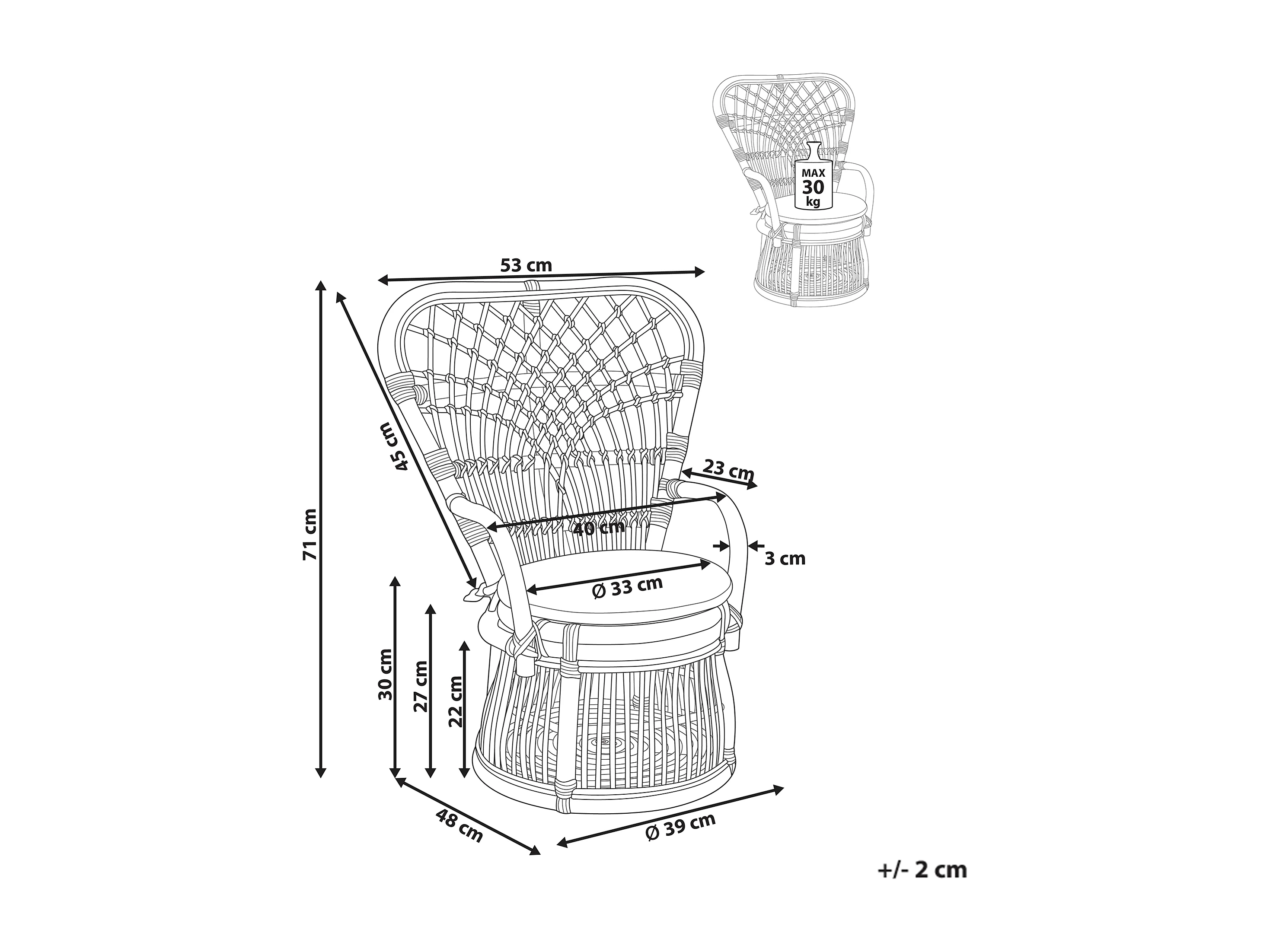 Sedia per bambini rattan naturale MIRTIA