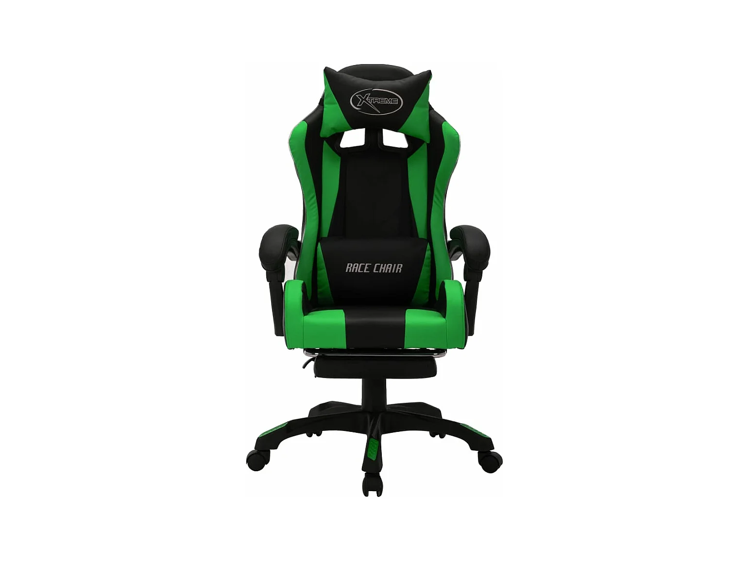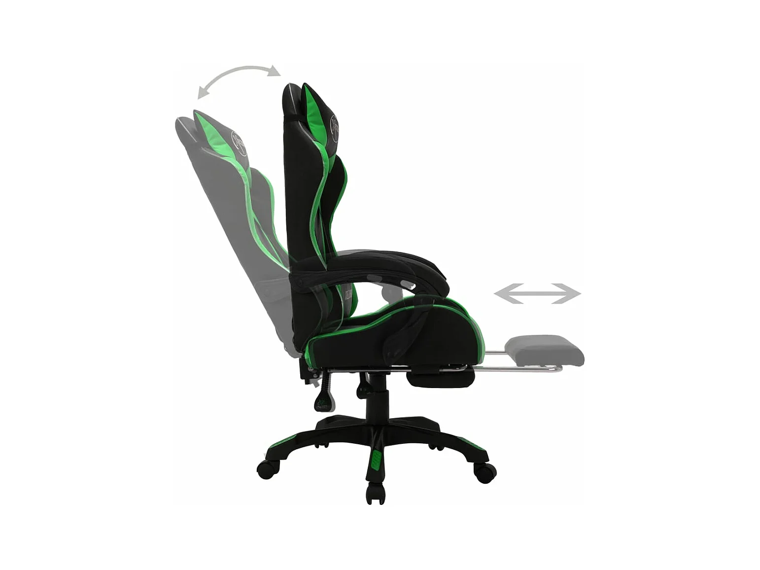 Sedia per videogiochi con LED RGB Ecopelle verde e nera