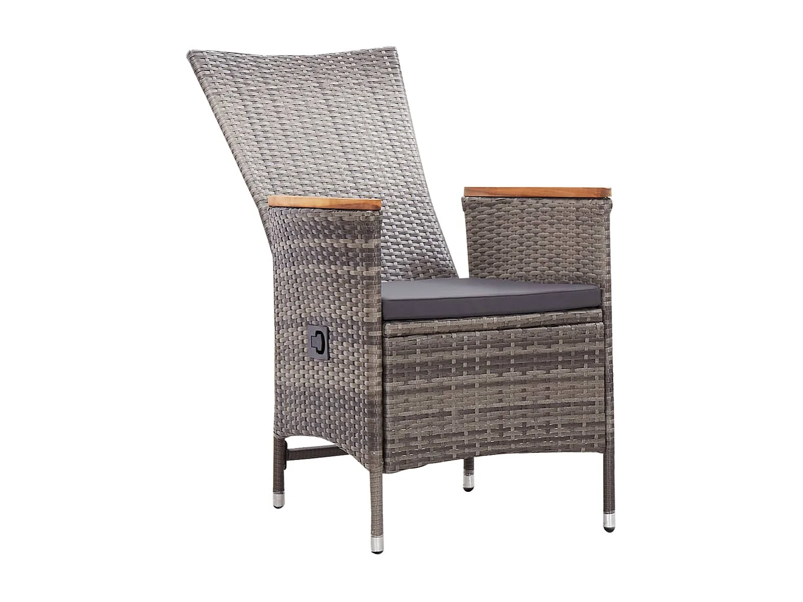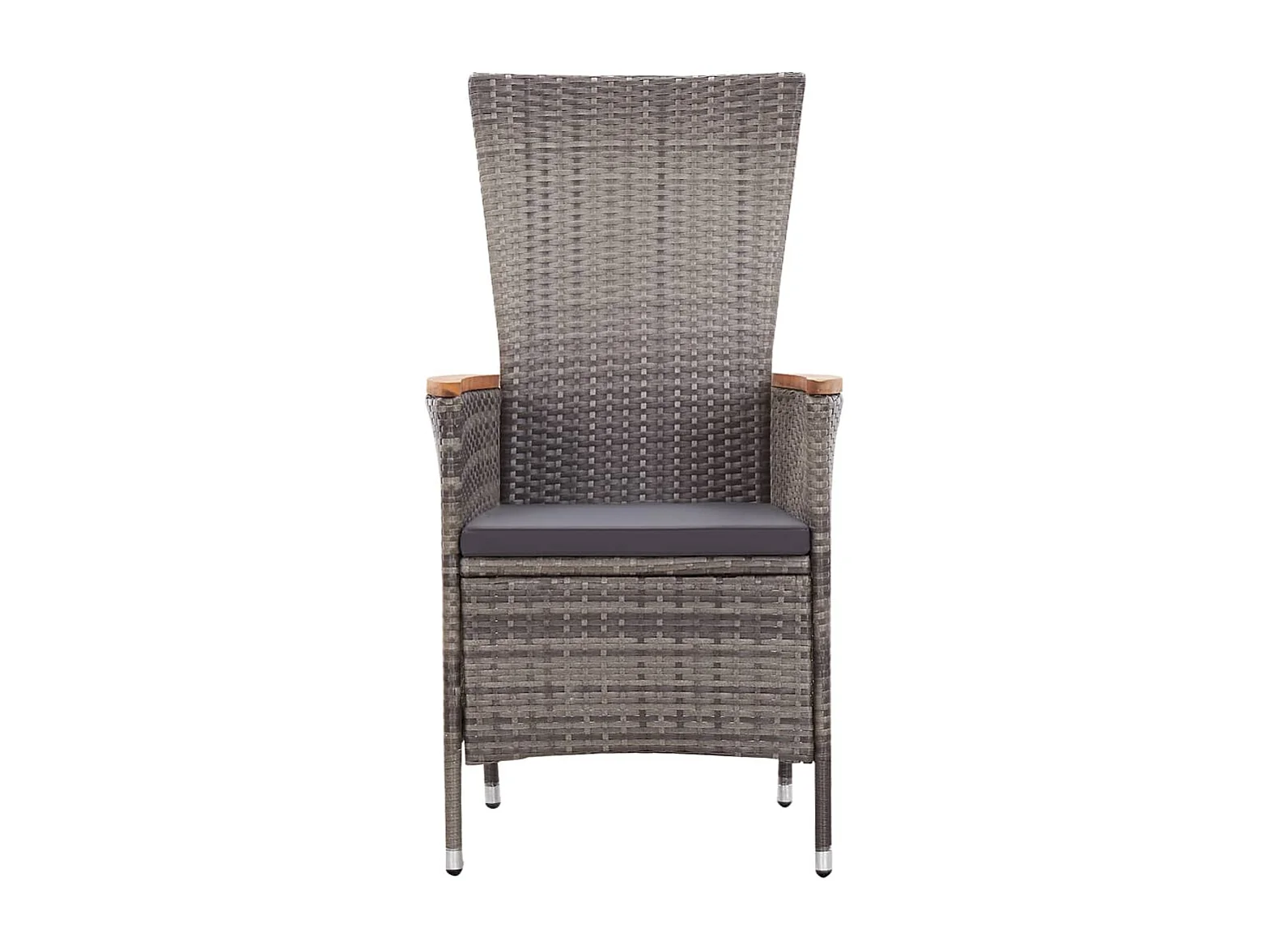 2 sedie da giardino reclinabili e tavolo in resina intrecciata grigia