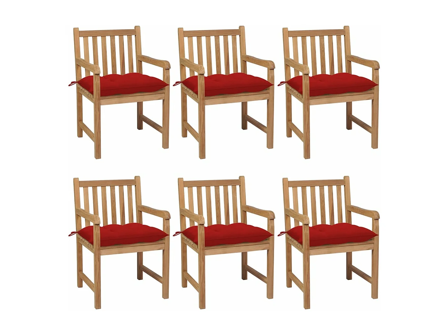 Sedie da Giardino 6 pz con Cuscini Rossi in Massello di Teak