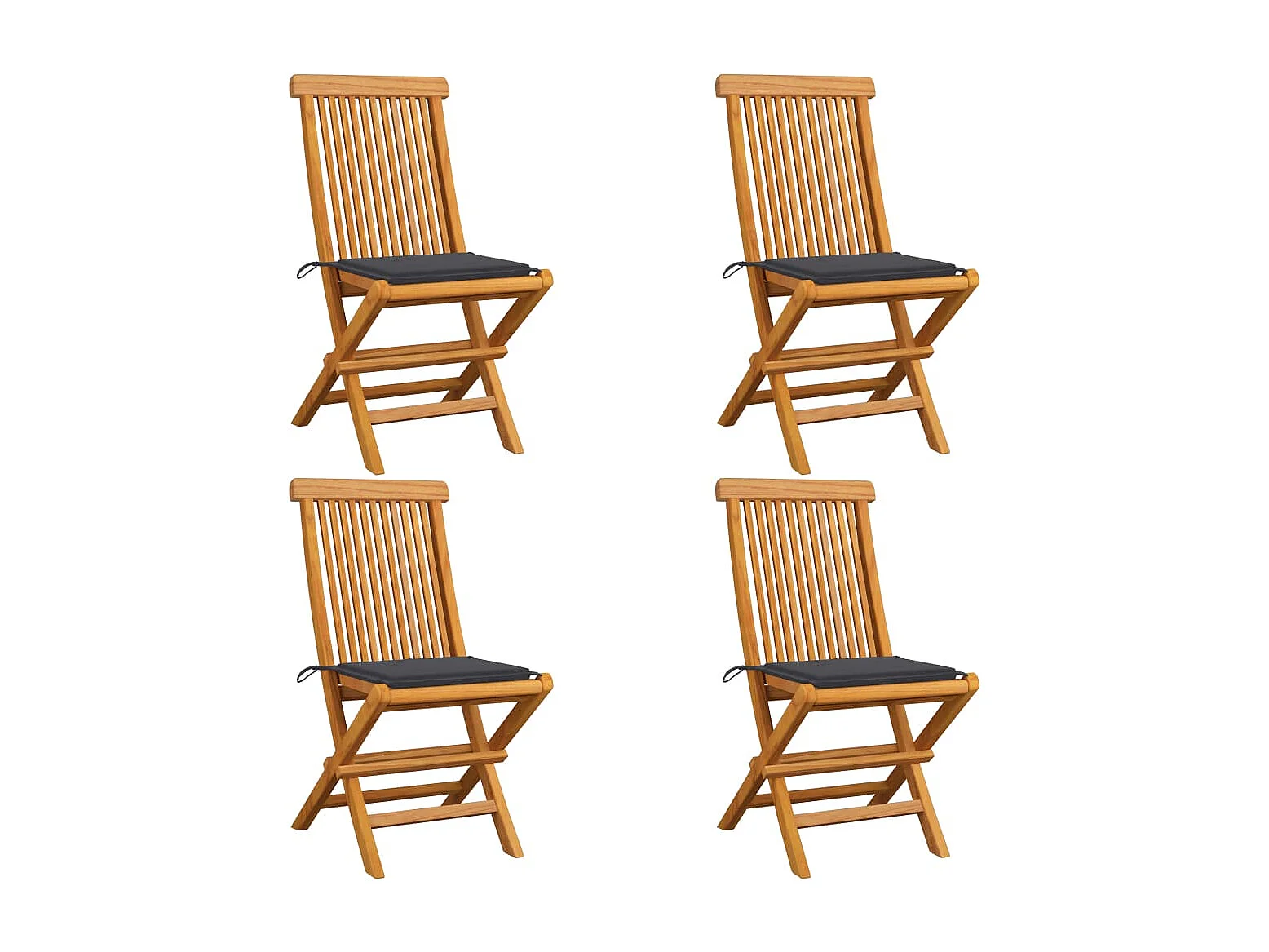 Sedie da giardino con cuscini antracite 4 pz. Legno di teak