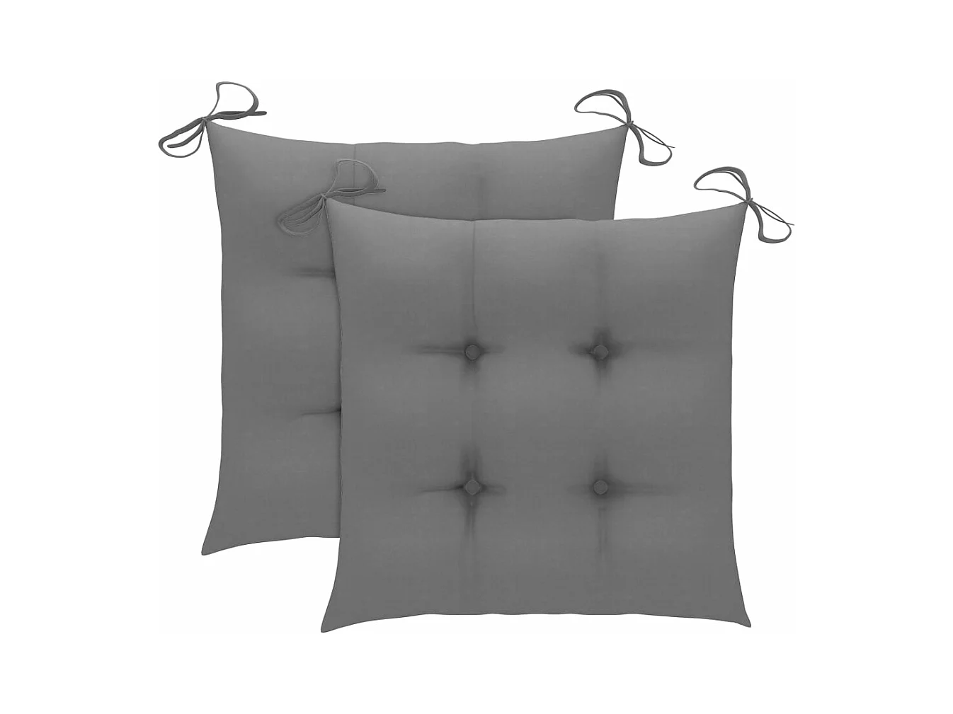 Set di 2 sedie da giardino e cuscini grigi. Legno massello di teak