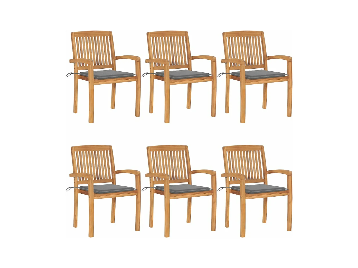 Sedie da giardino impilabili con cuscini 6 pz. Teak massiccio
