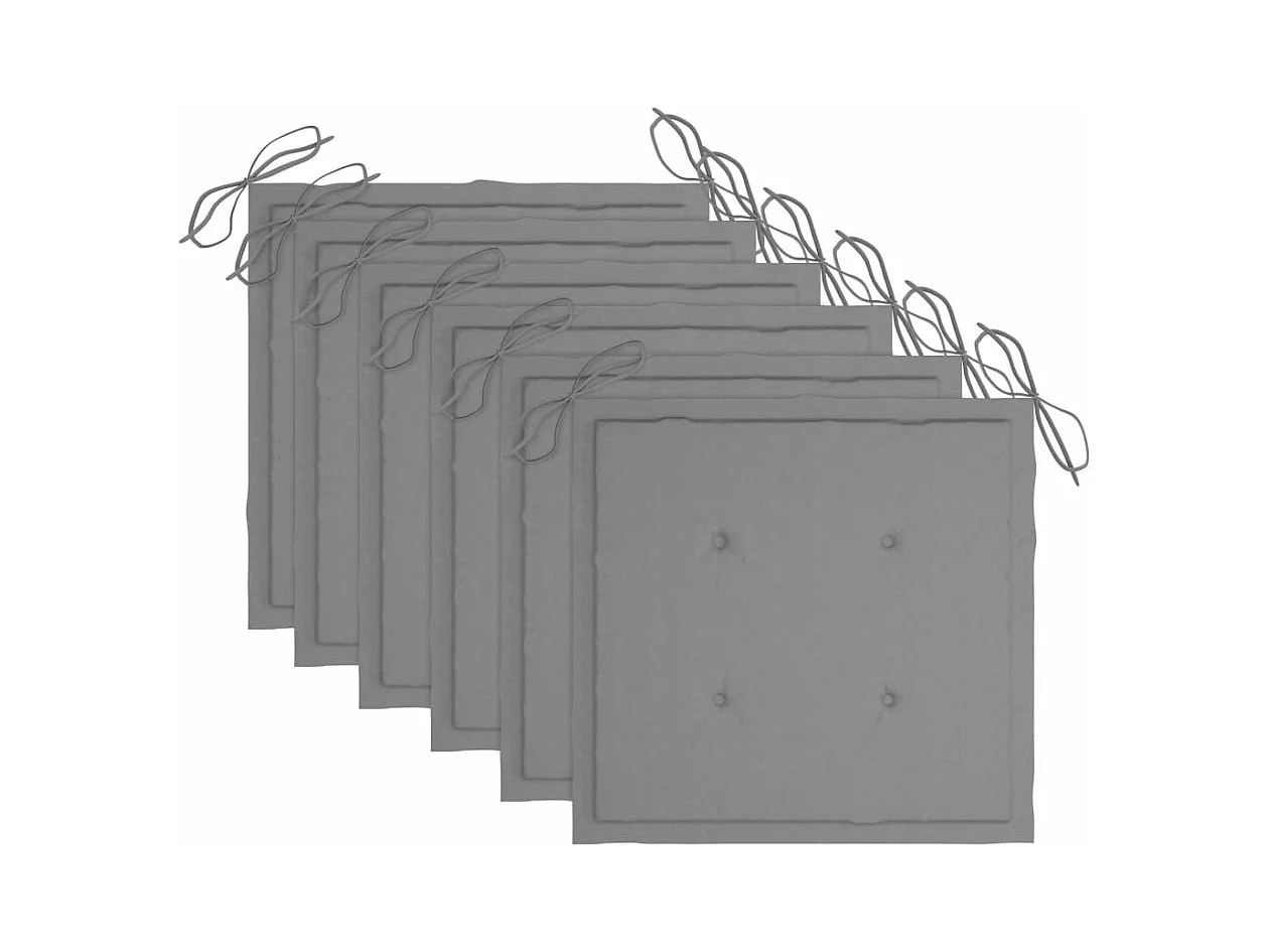 Set di 6 sedie da giardino con cuscini grigi. Legno massello di teak