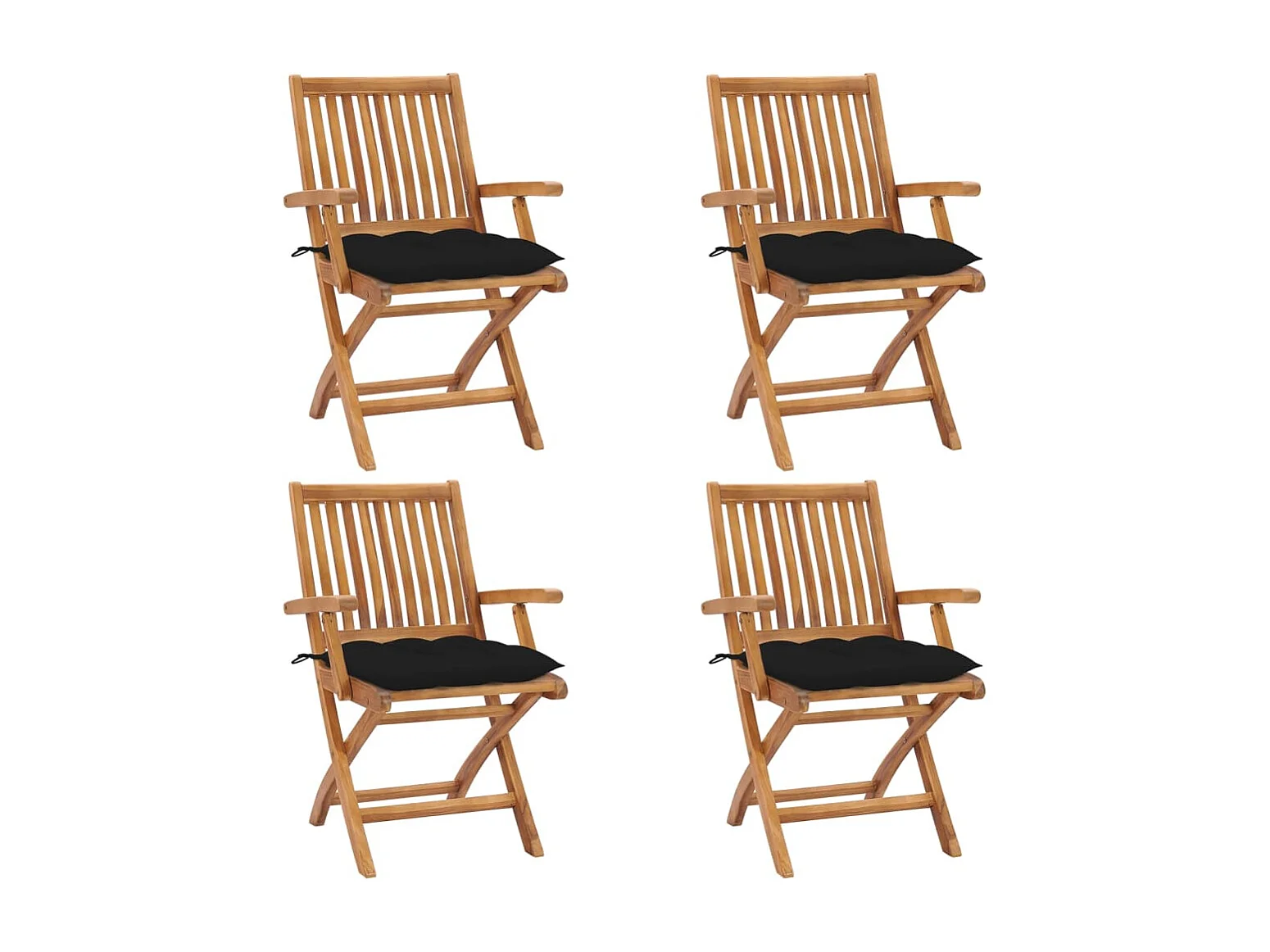 Sedie da giardino pieghevoli con cuscini 4 pezzi Teak massiccio