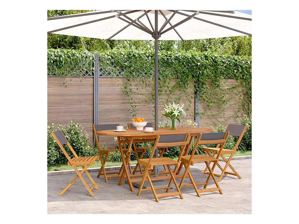 Sedie Giardino Pieghevoli 6pz Antracite Tessuto Legno Massello