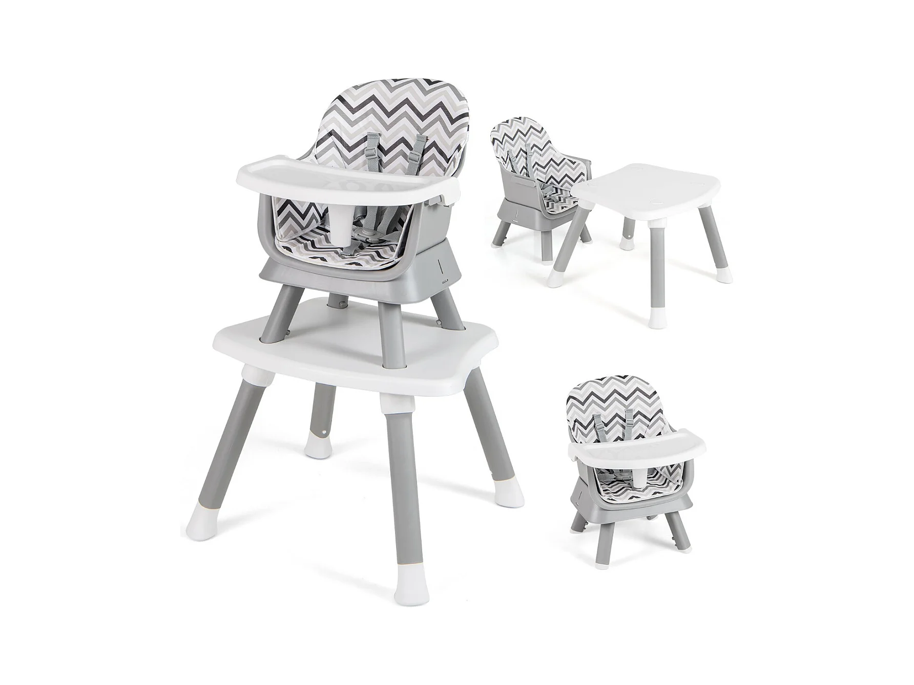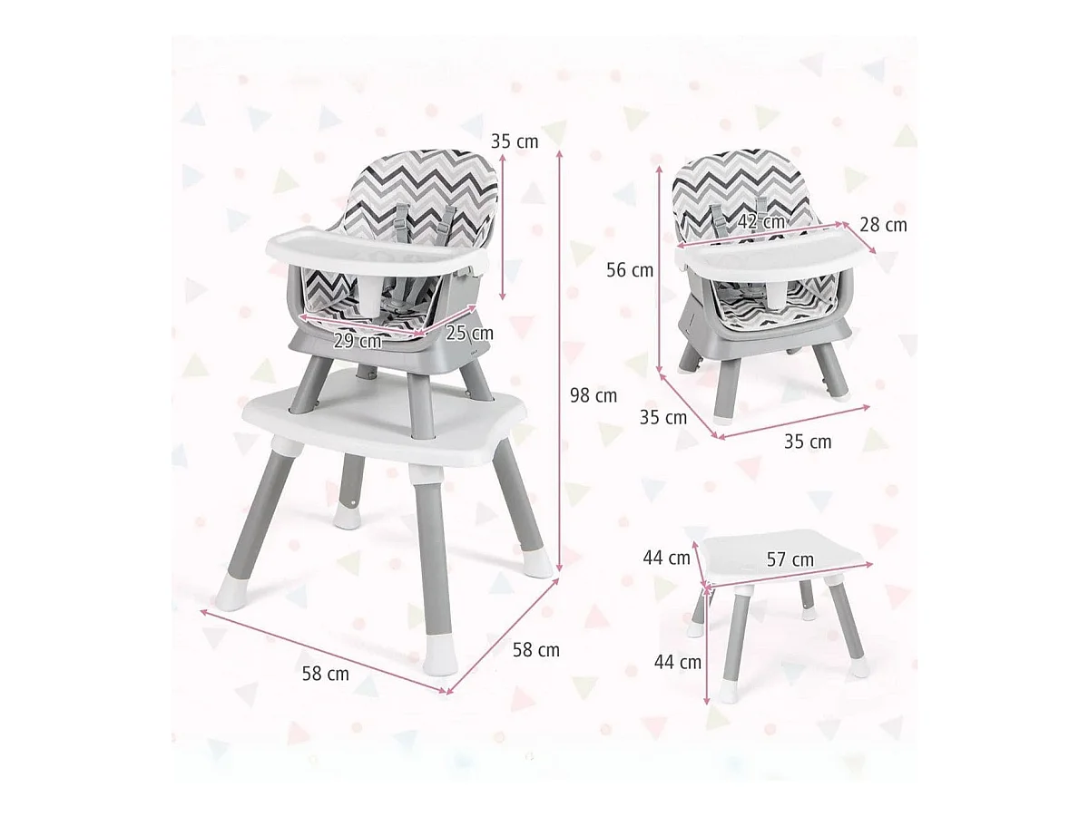Seggiolone per neonati e bambini 6 in 1 Set di sedie da tavolo trasformabili con tavolo per costruzioni Grigio