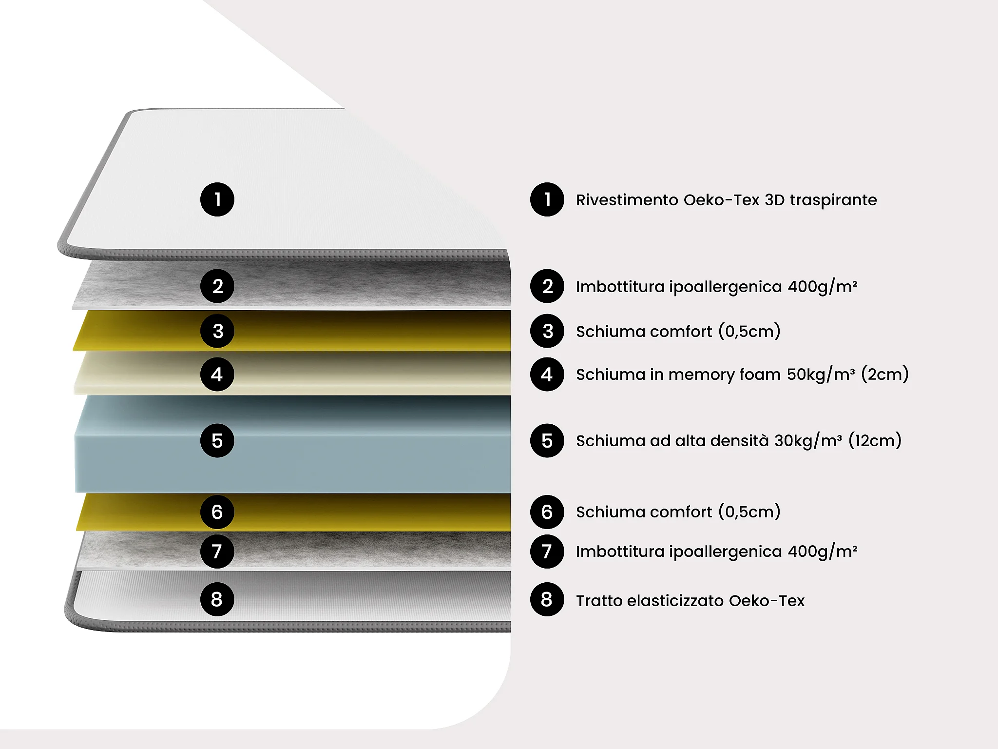Set 160x200 rete vano cassetto Bianco+Mater. memory HD e Tessuto 3D traspirante sp. 18 - HEAVEN di YSMÉE