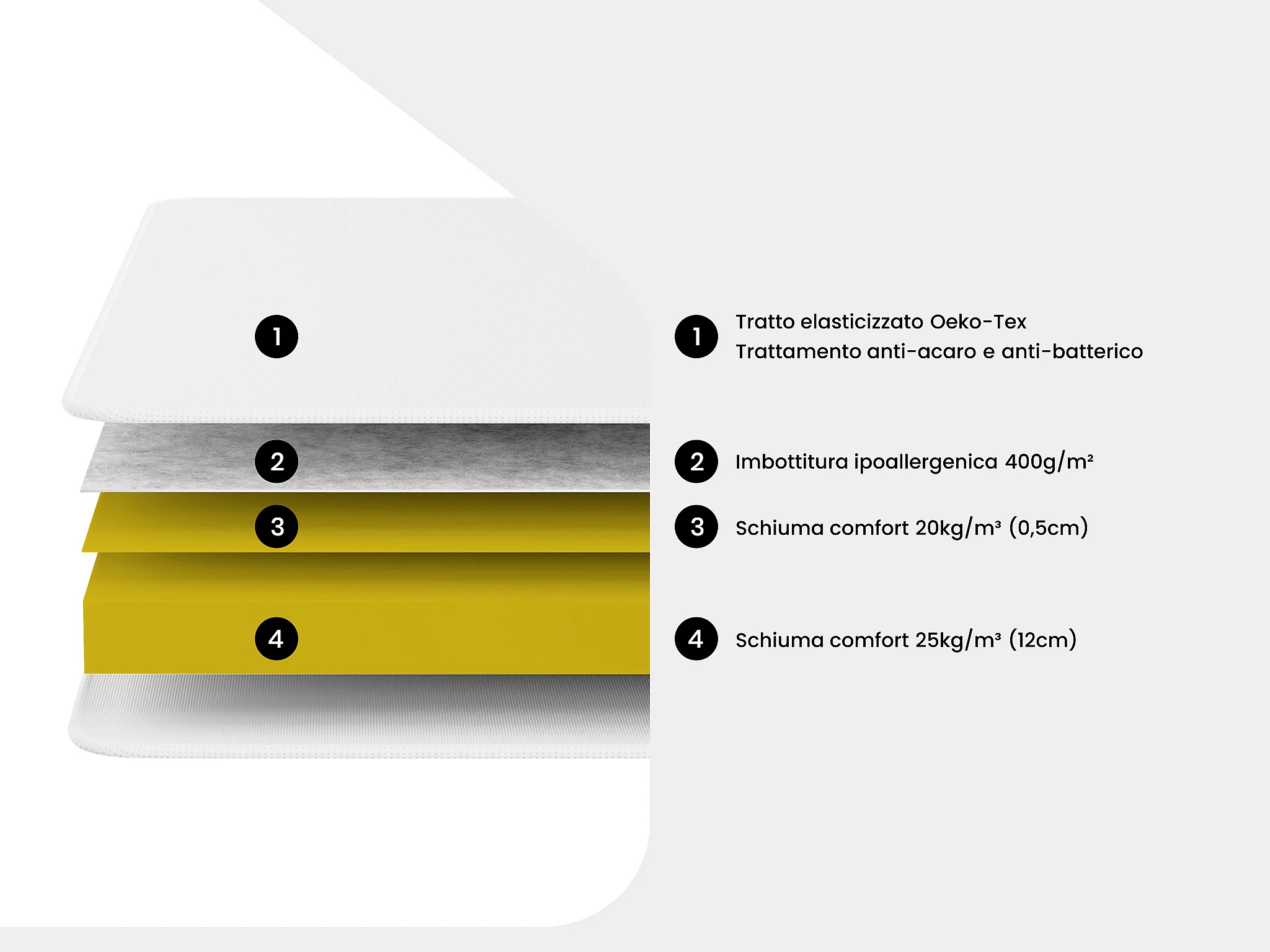 Set 90 x 190 cm Rete contenitore Bianco + Materasso schiuma sp. 15 cm - ZEUS di YSMÉE