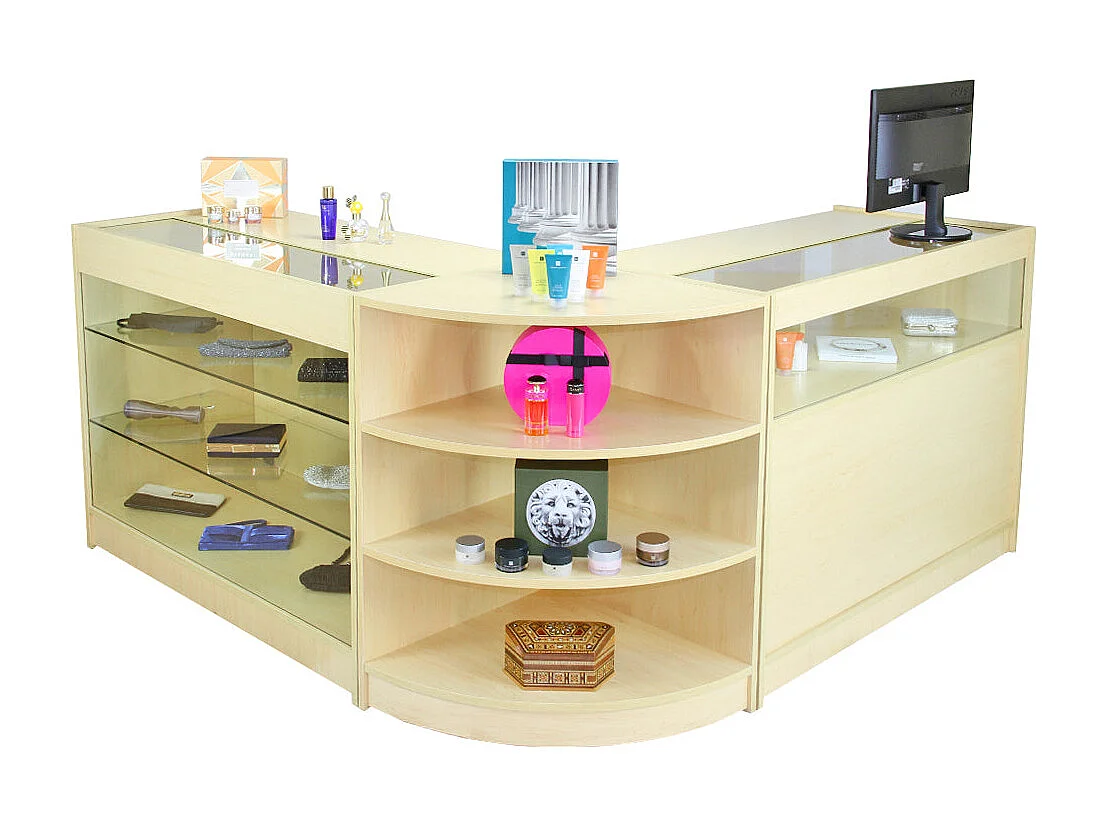 Set Aquarius con 3 Banconi da Negozio con Finitura in Acero Laminato