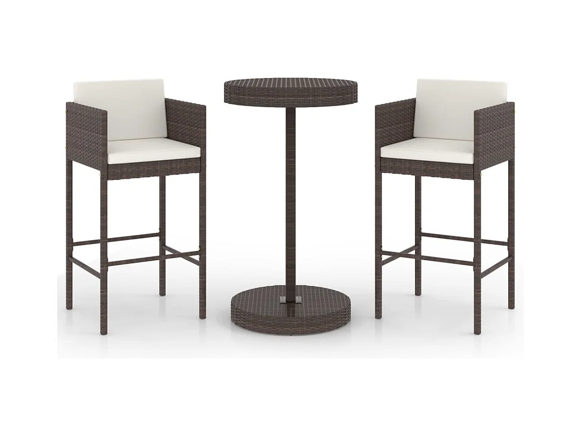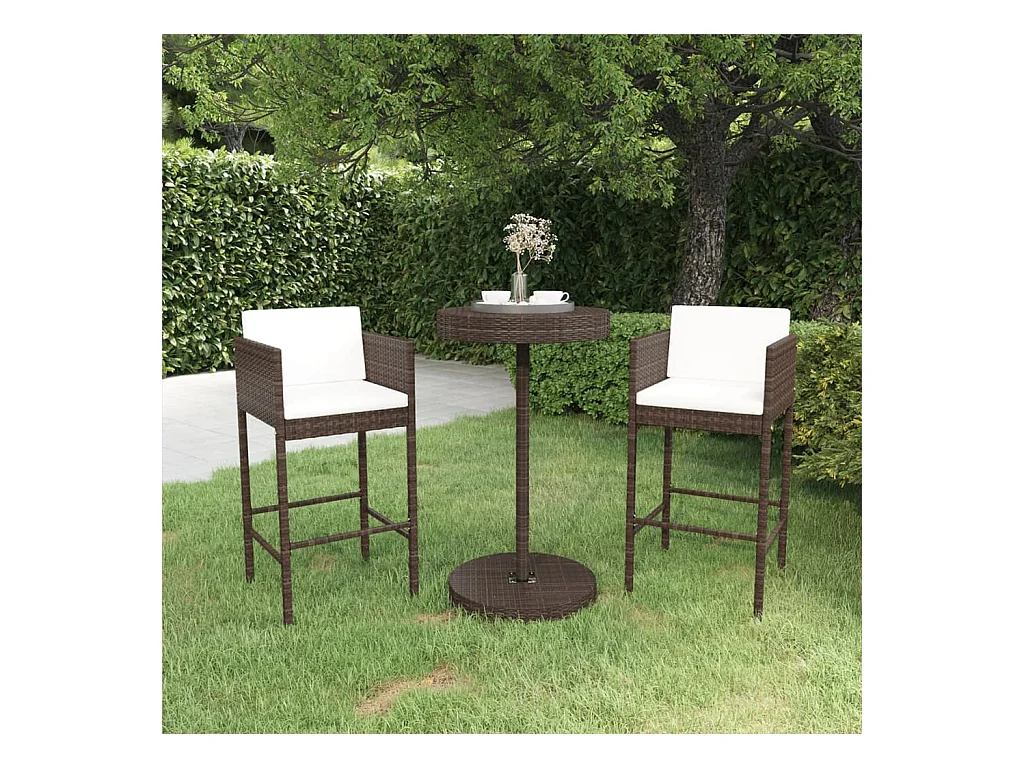 Set Bar da Giardino 3 pz con Cuscini Polyrattan Marrone