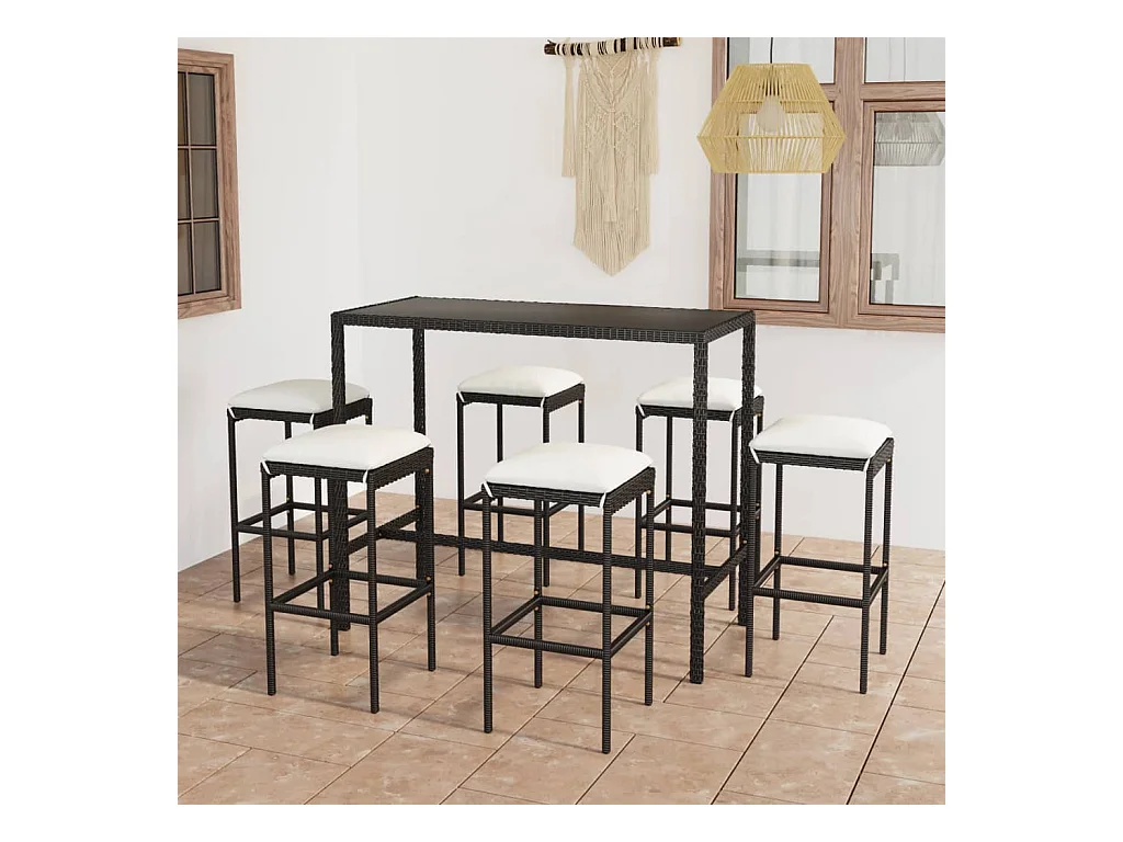 Set Bar da Giardino 7 pz con Cuscini in Polyrattan Nero