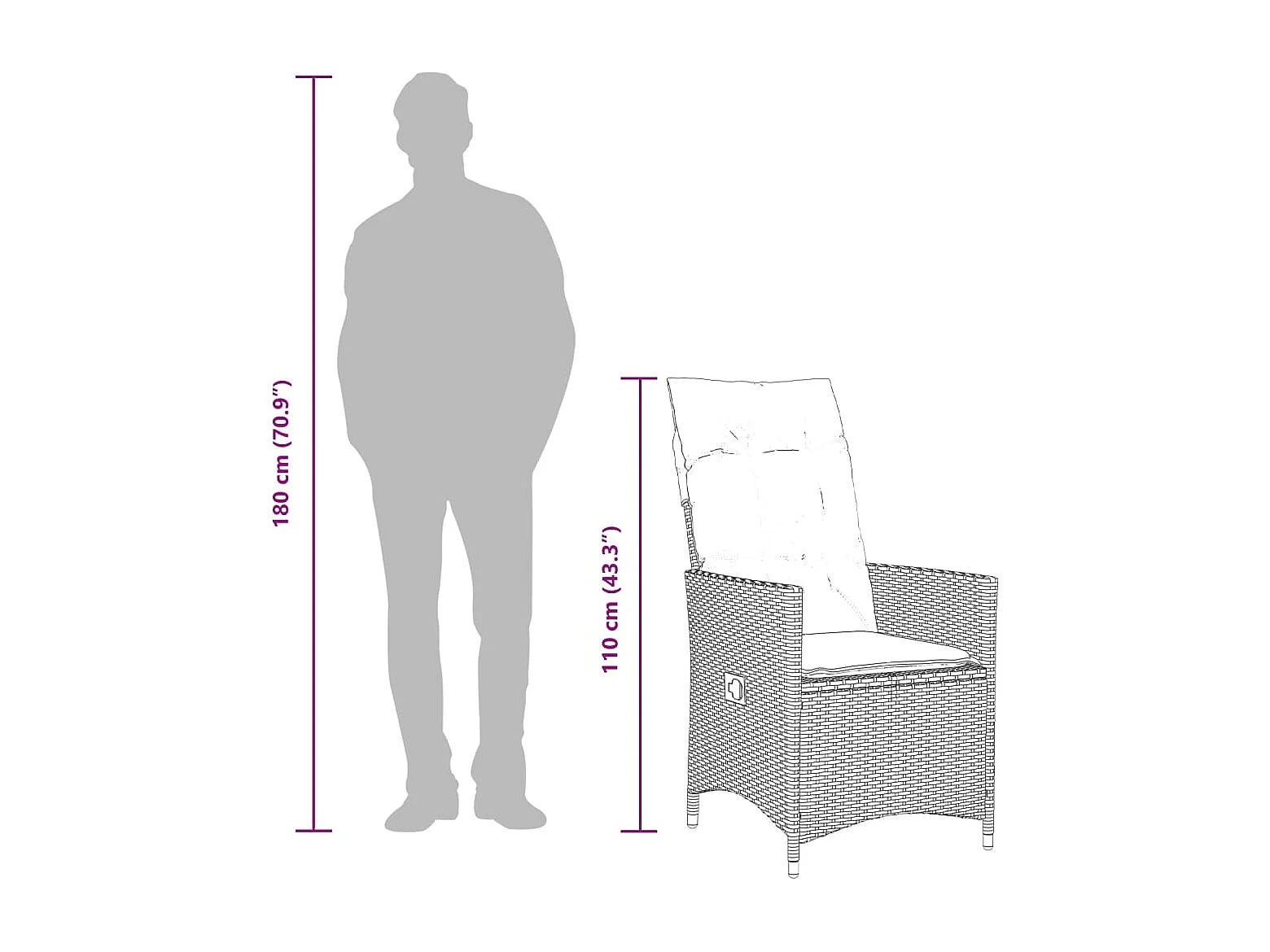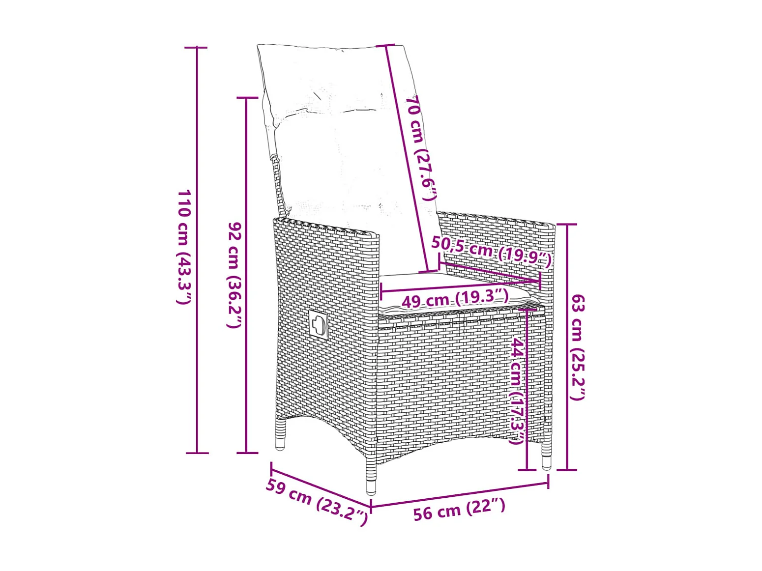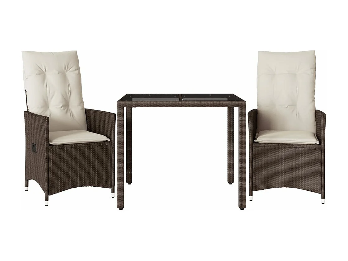 Set Bistrò 3 pz con Cuscini Marrone in Polyrattan
