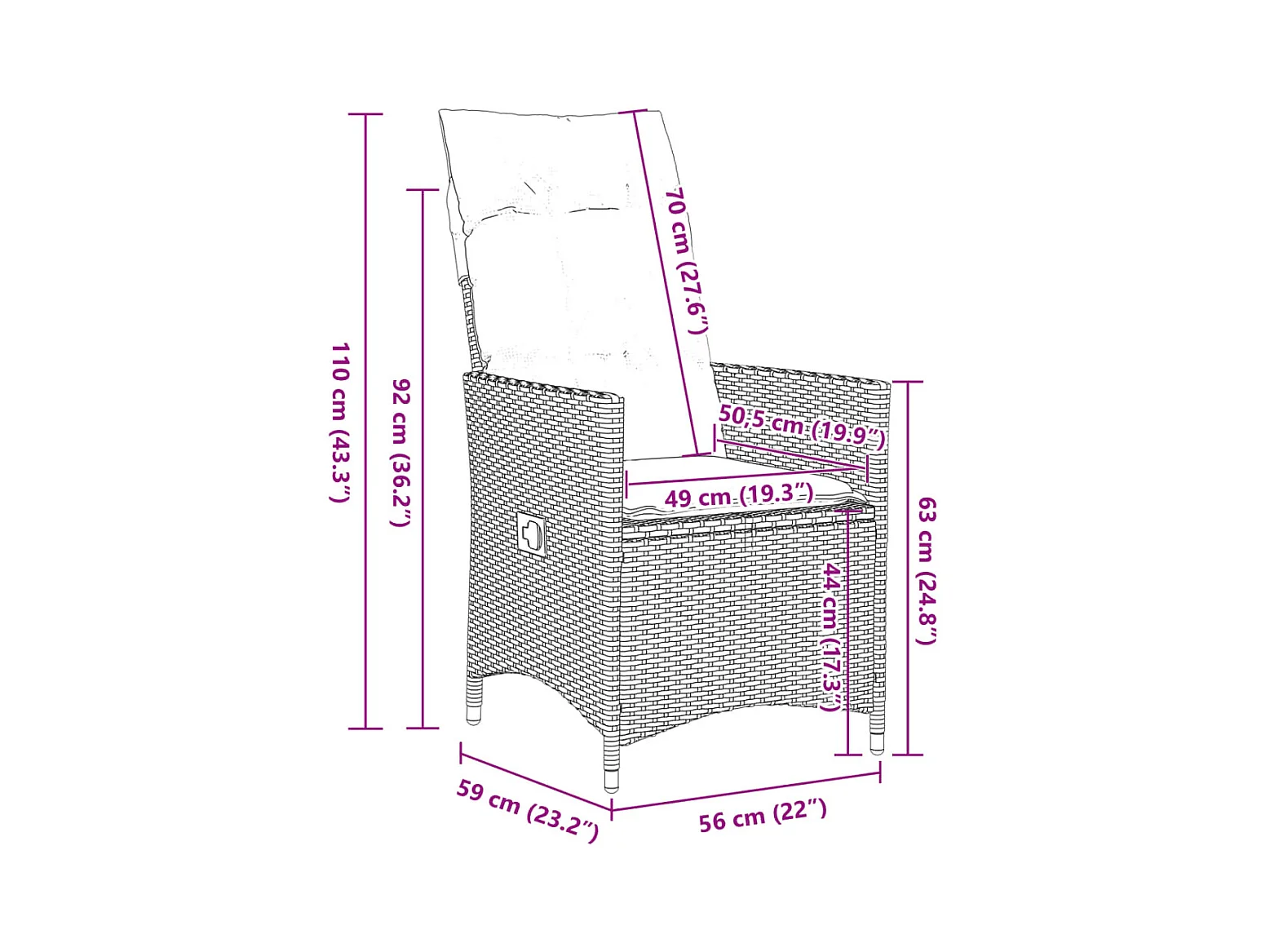 Set Bistrò da Giardino 9 pz con Cuscini in Polyrattan Marrone