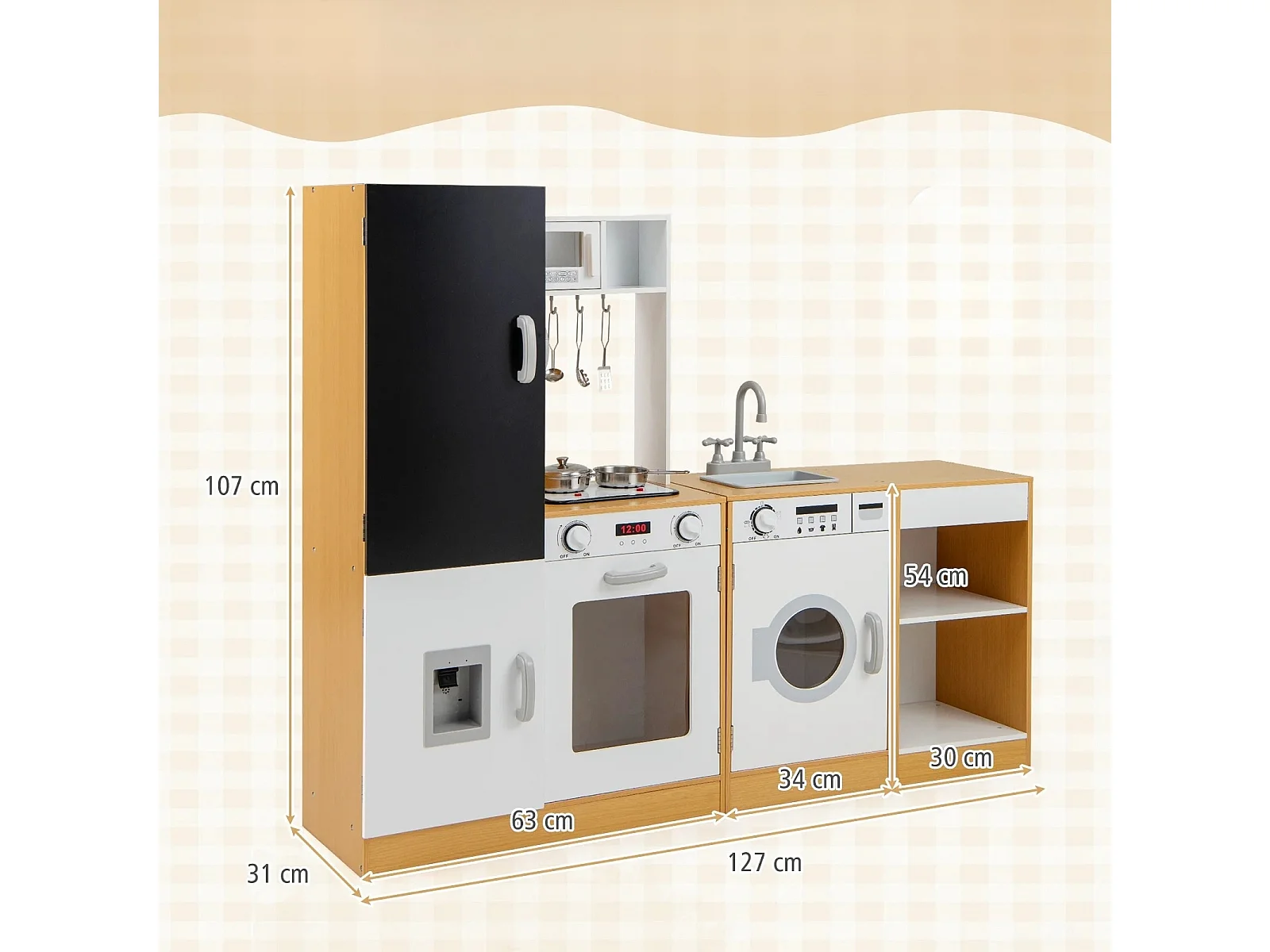 Set cucina per bambini 3 pezzi cucina in legno con suoni e luci realistici natura + bianco