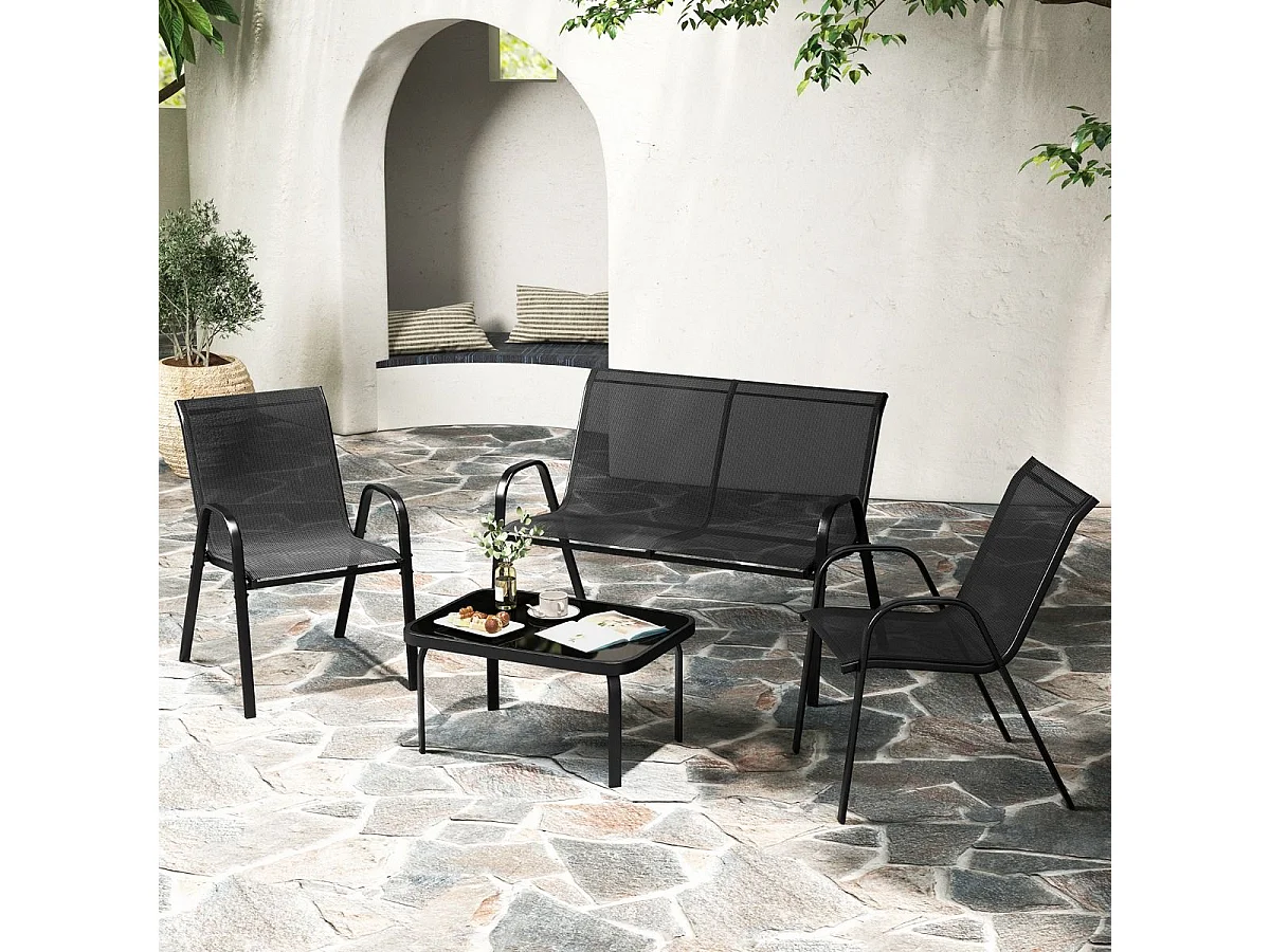 Set da 4 pezzi di mobili per esterni con tavolino in vetro temperato, Set da conversazione all'aperto Grigio