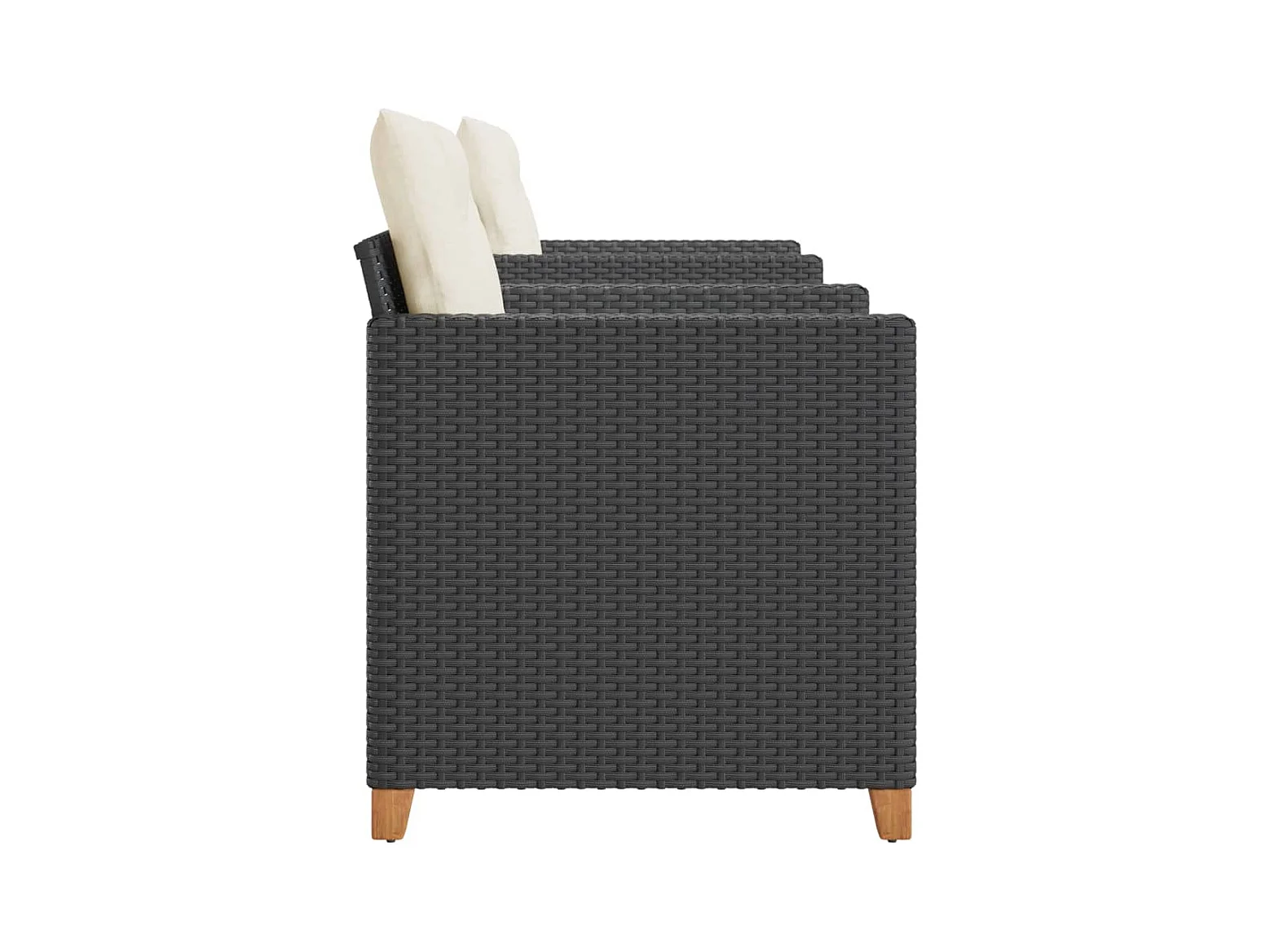 Set da Bistrò 3 pz con Cuscini Nero Polyrattan e Legno Acacia