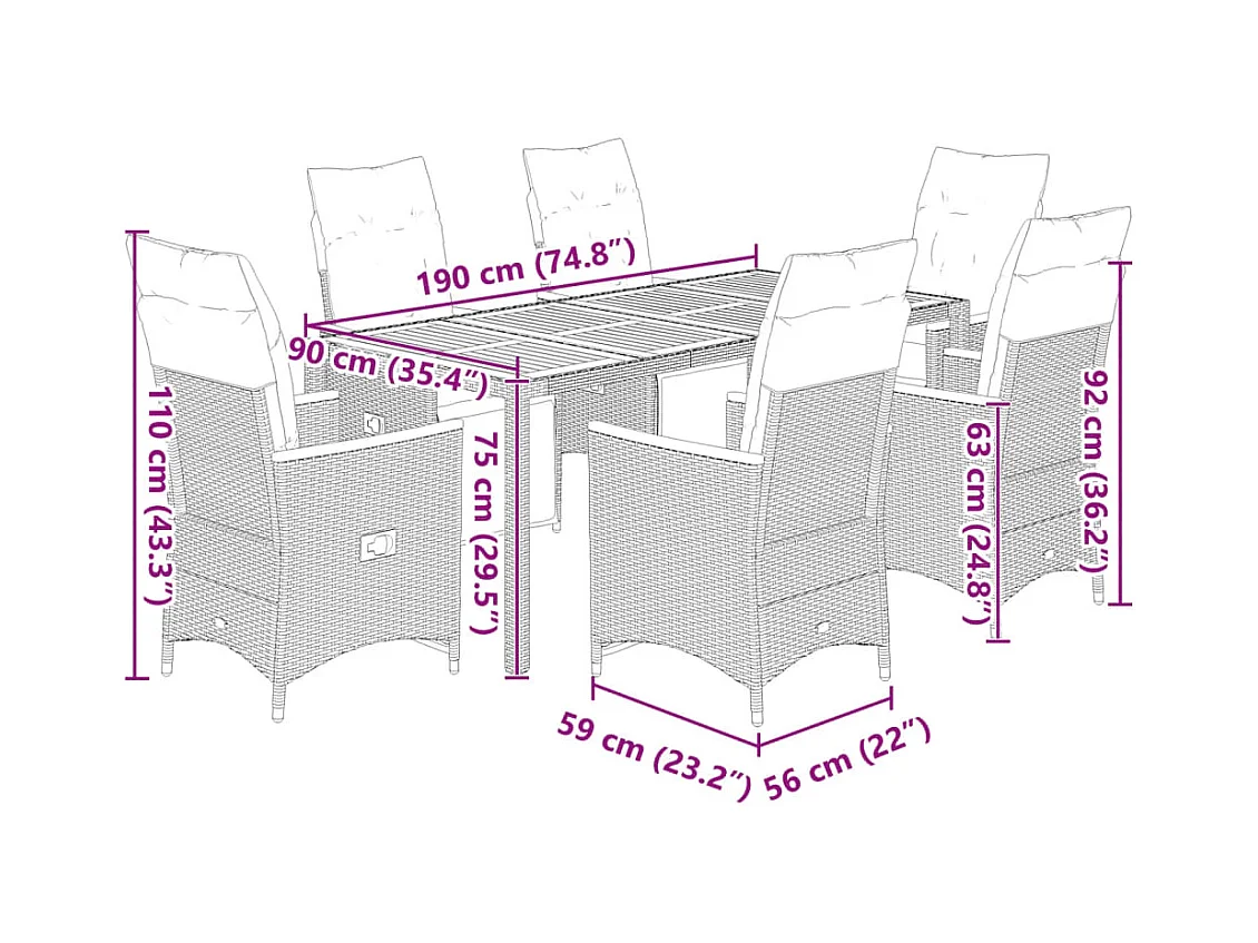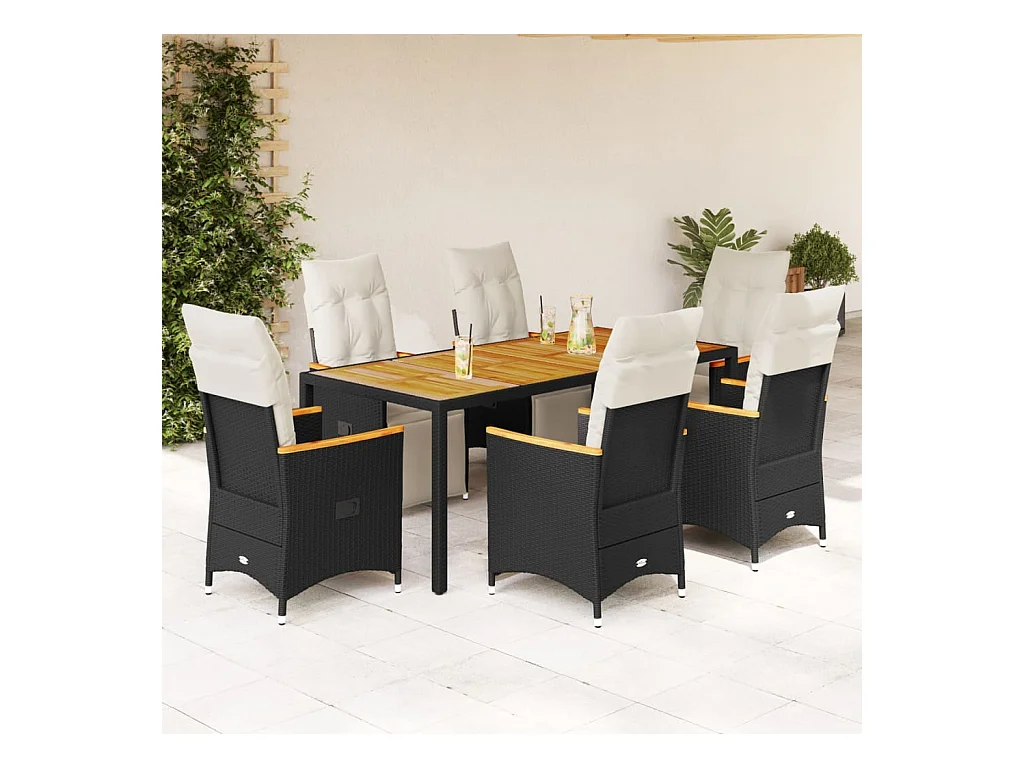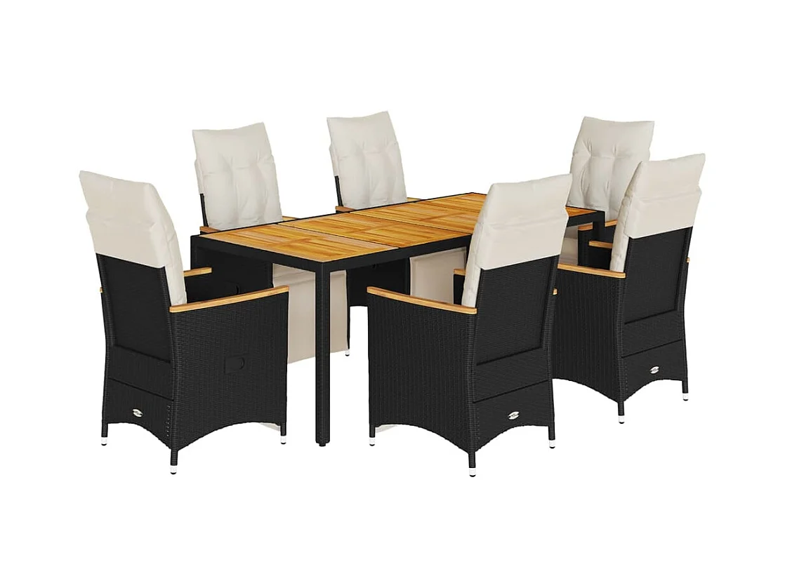 Set da Bistrò da Giardino 7 pz con Cuscini Nero in Polyrattan