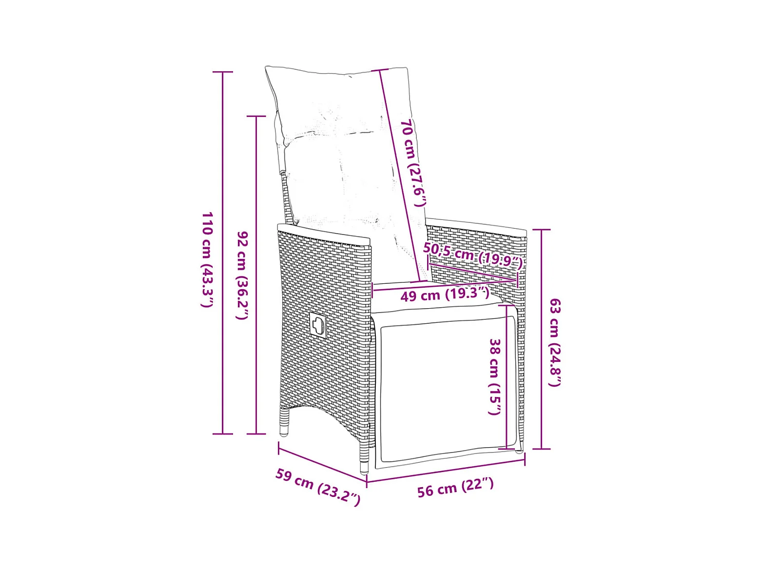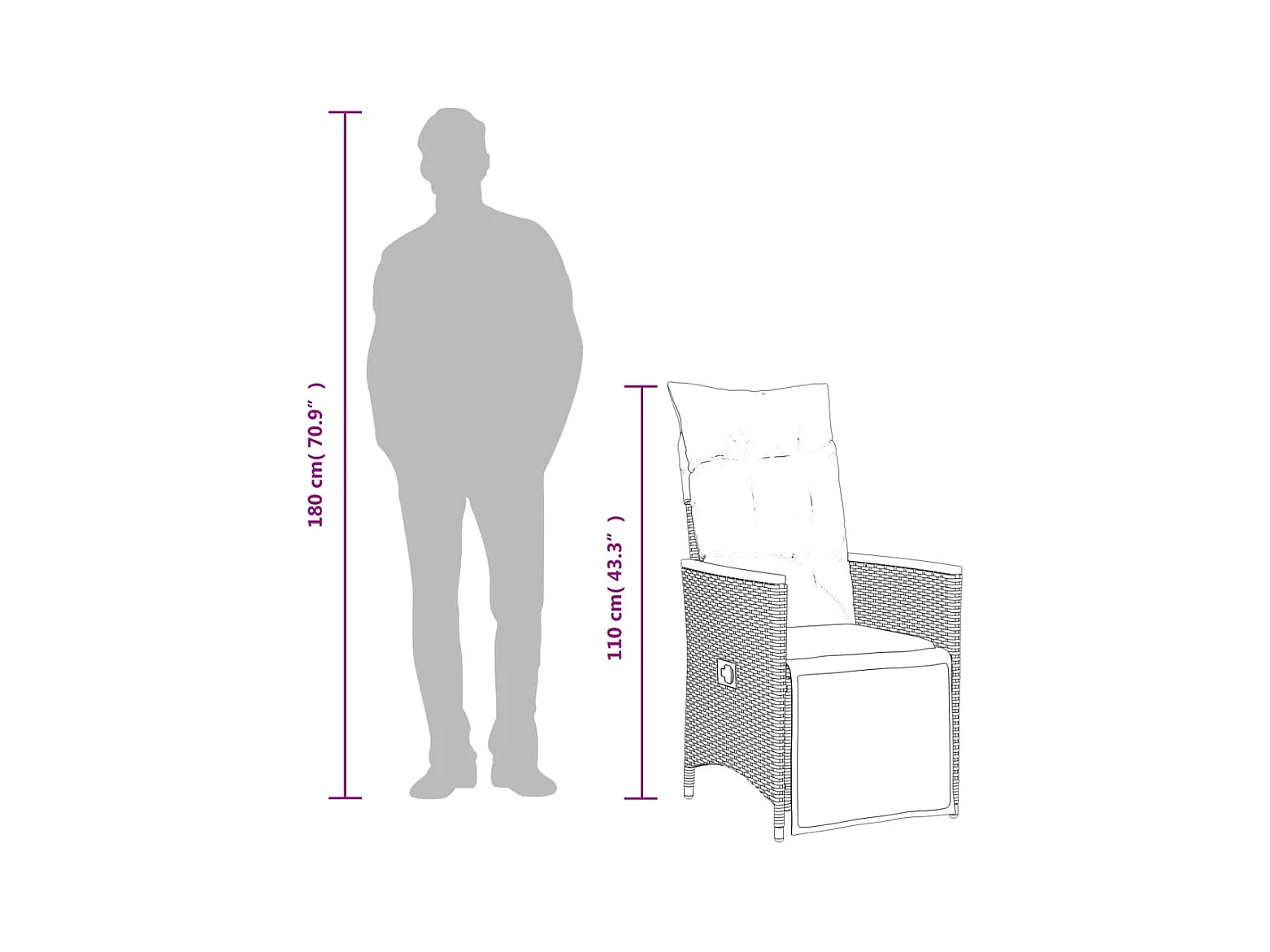 Set Bistrò da Giardino 9 pz con Cuscini in Polyrattan Nero