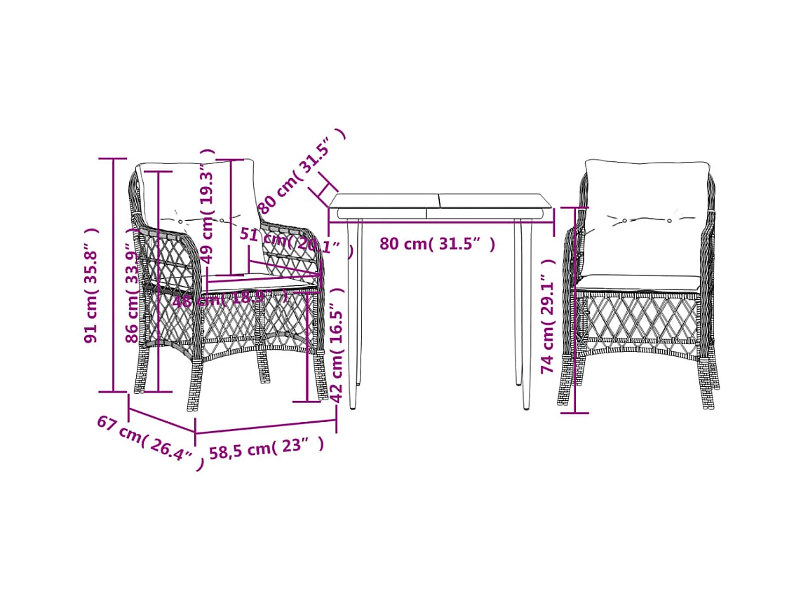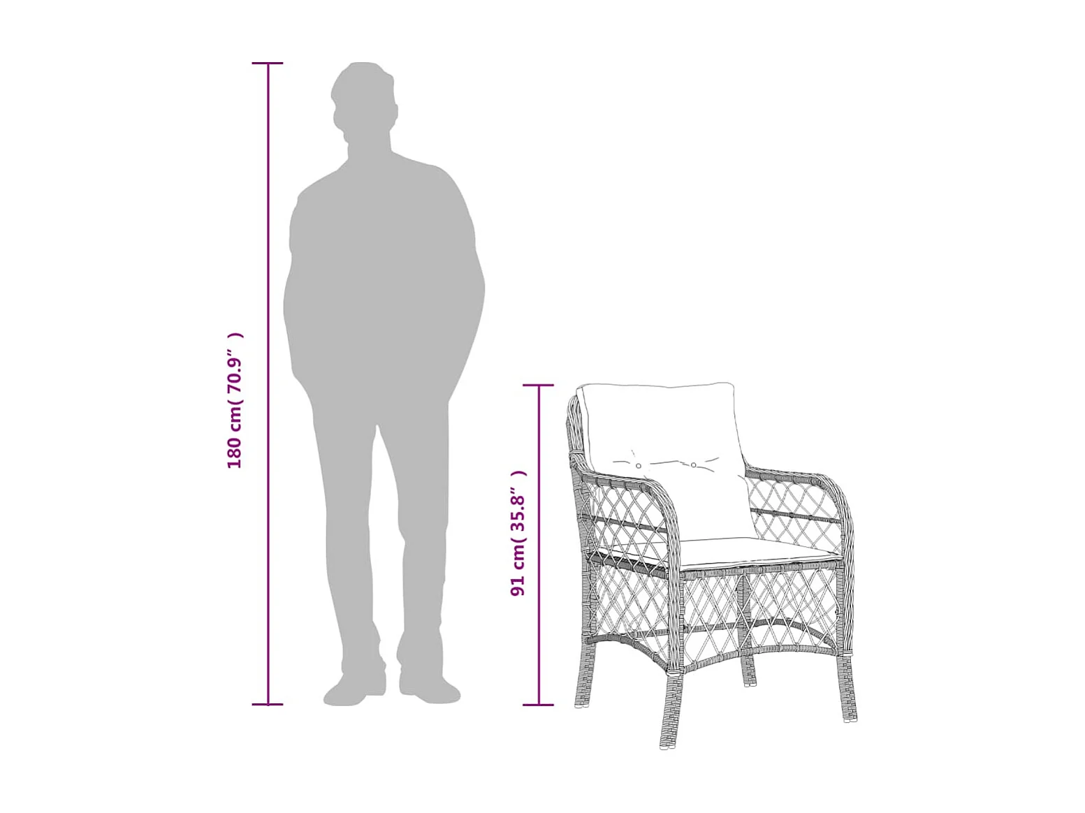 Set da pranzo da giardino 3 pezzi Cuscini grigio chiaro Poly Rattan