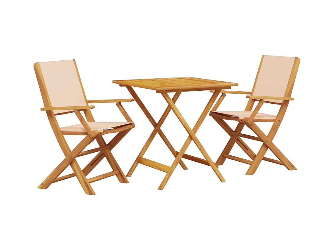 Set da Bistrot 3pz Beige in Polipropilene e Legno Massello