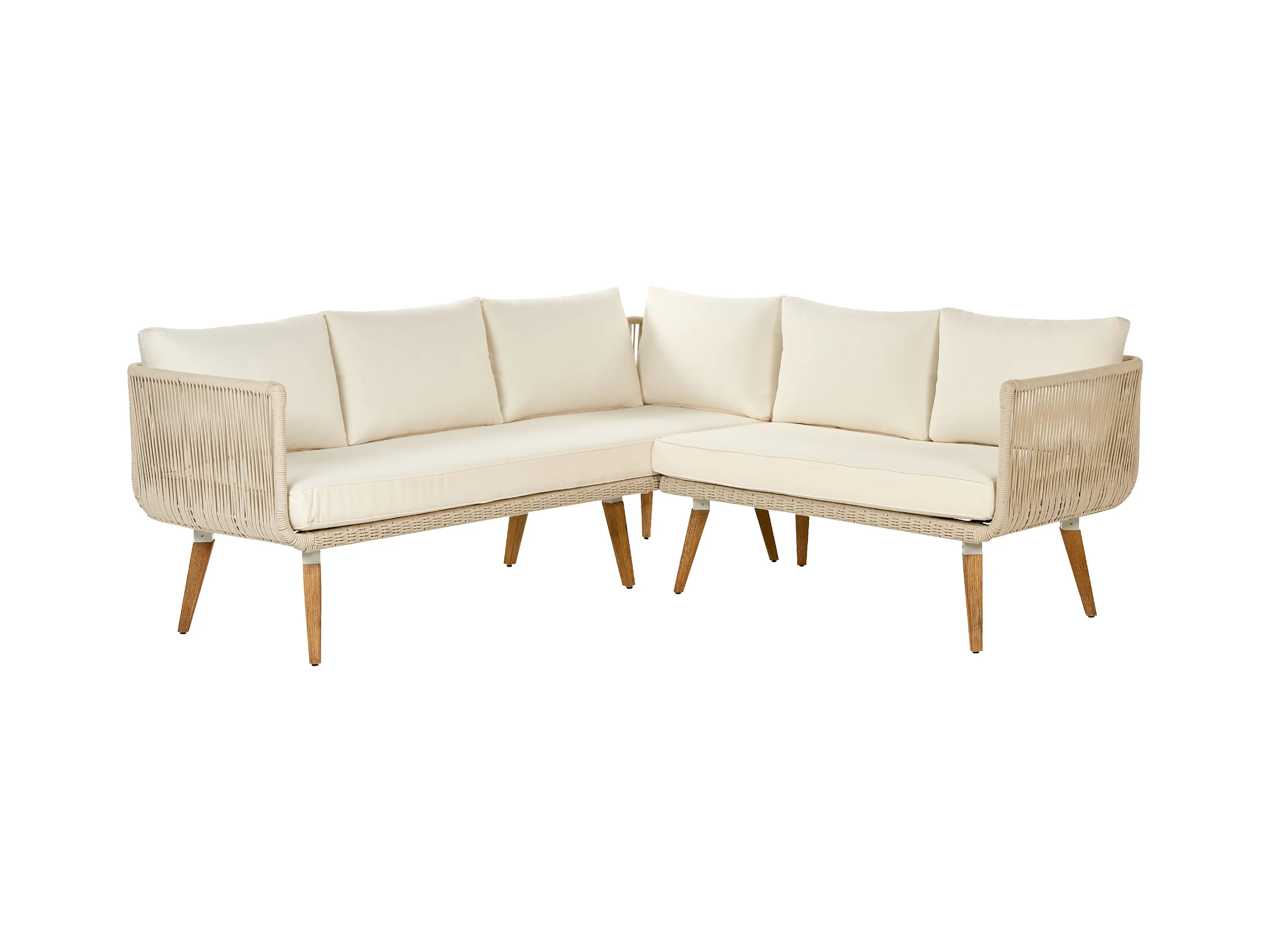 Mobile da giardino angolare con cuscini 3 pezzi in resina intrecciata beige