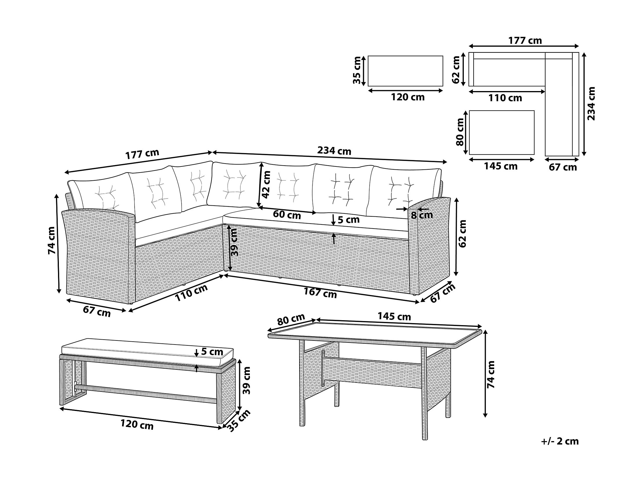 Set salotto da giardino con tavolo e pouf 9 posti LACONA Lato destro Grigio chiaro