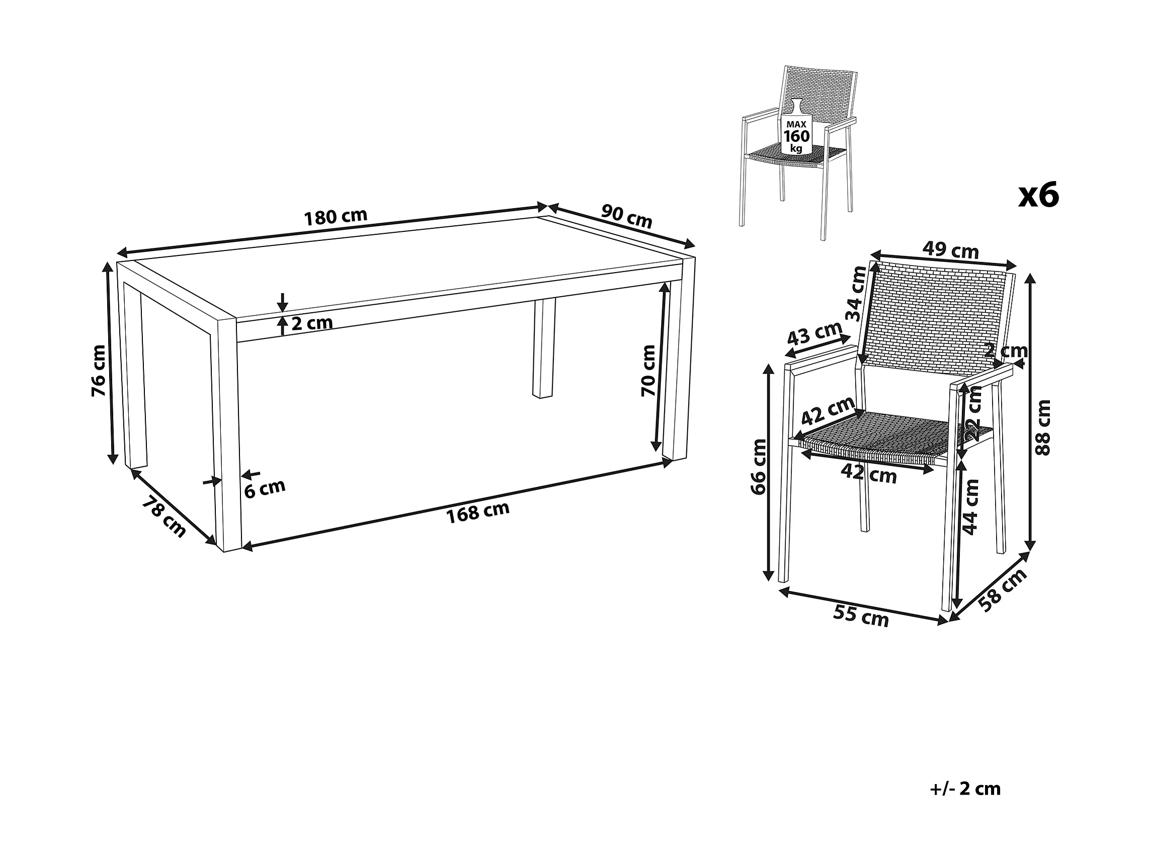 Set da pranzo da giardino 6 posti VERNIO Nero/ Argento