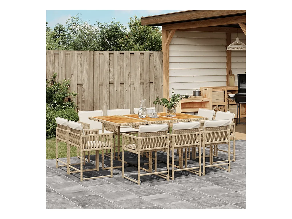 Set Pranzo da Giardino 11 pz con Cuscini Beige Misto Polyrattan