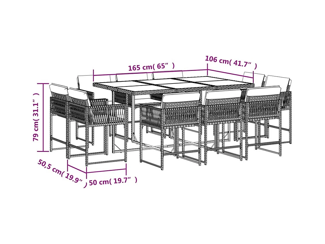 Set Pranzo Giardino 11pz con Cuscini Grigio Chiaro Polyrattan