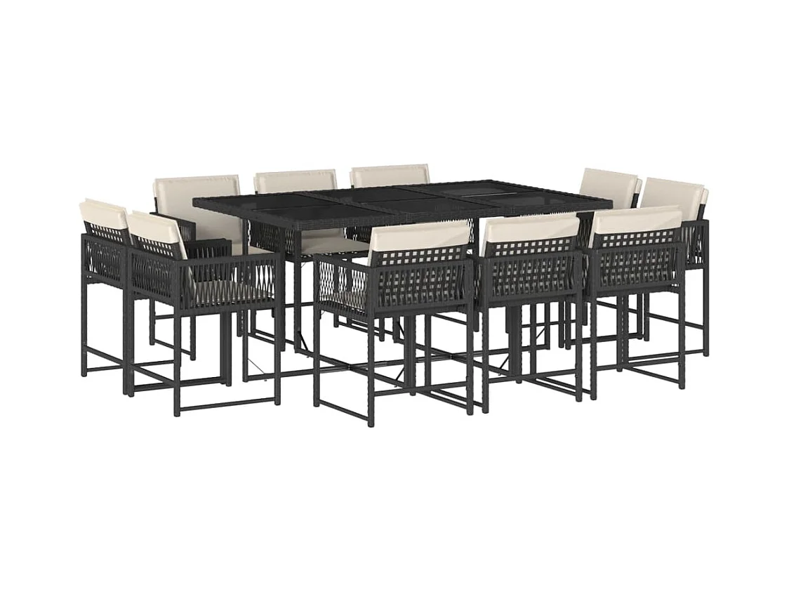 Set da Pranzo da Giardino 13pz con Cuscini Nero in Polyrattan