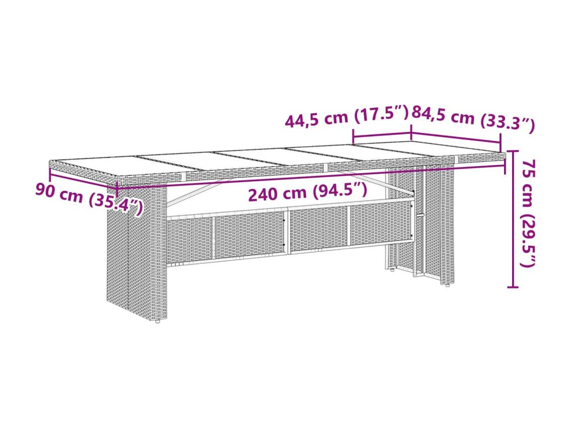 • Materiale: rattan PE, acciaio verniciato a polvere, vetro temperato