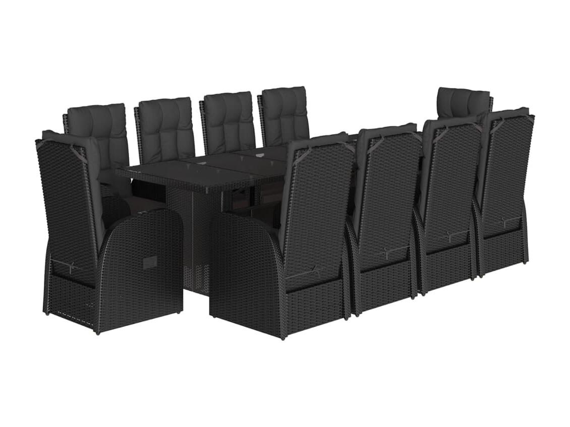 Set da Pranzo da Giardino 11 pz con Cuscini in Polyrattan Nero