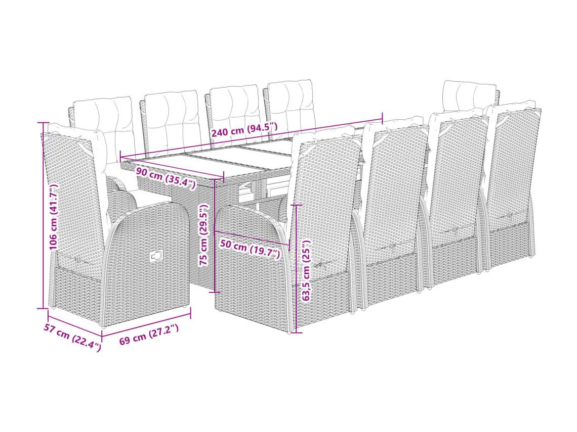 • Materiale: rattan PE, acciaio verniciato a polvere