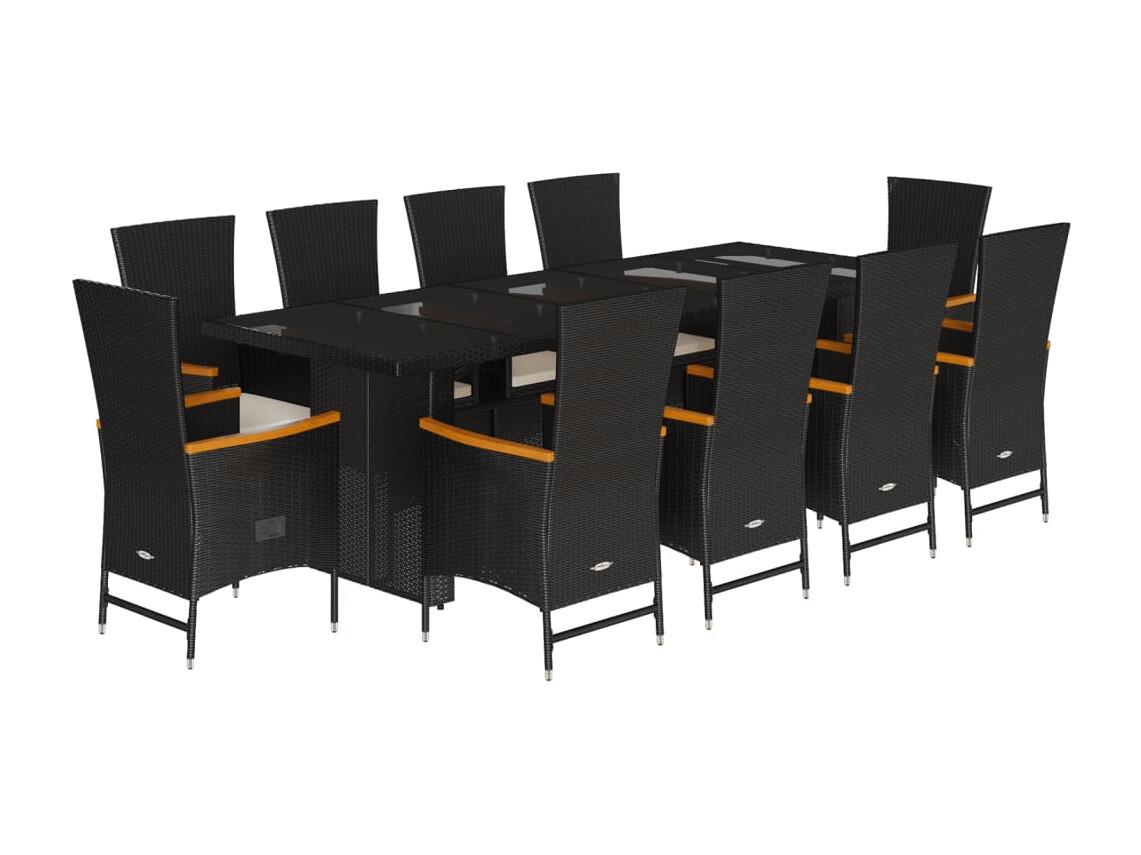 Set da Pranzo da Giardino 11 pz con Cuscini in Polyrattan Nero