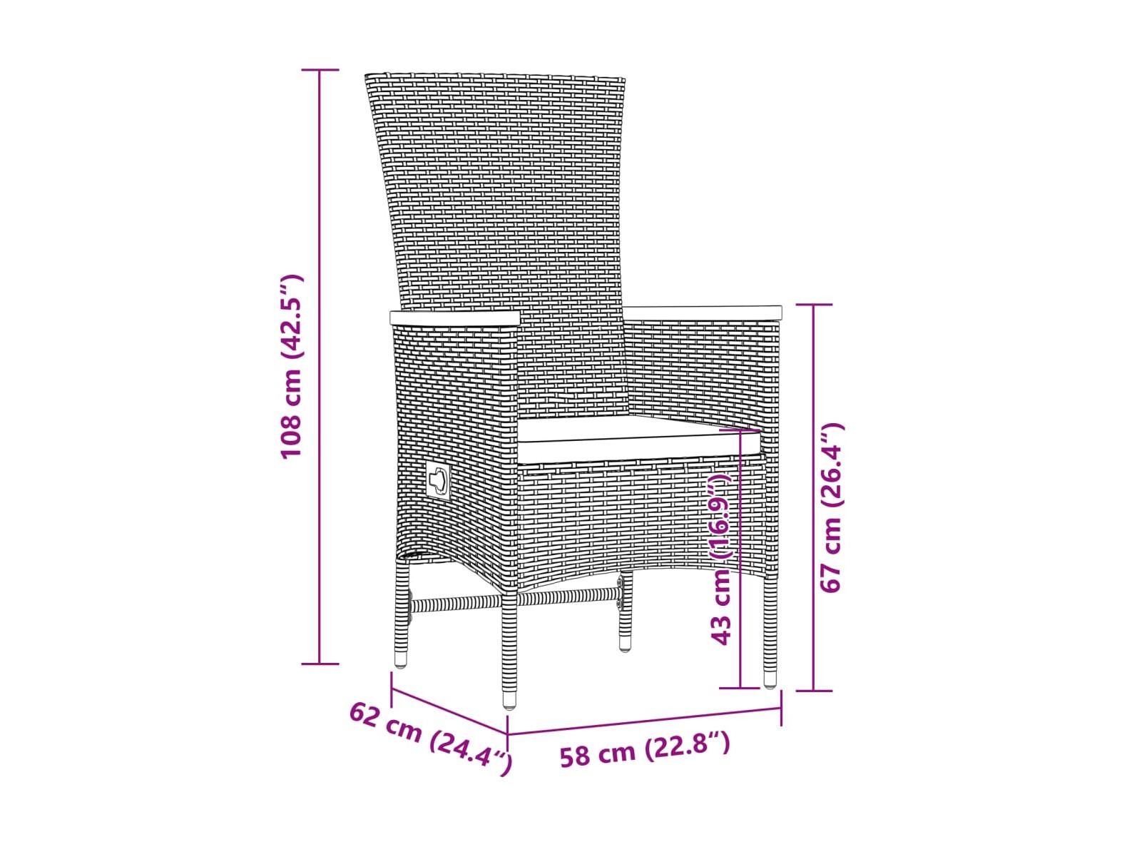 • Dimensioni della seduta: 58 x 62 x 108 cm (L x P x A)