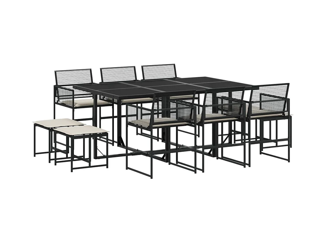 Set da Pranzo da Giardino 11 pz con Cuscini in Polyrattan Nero