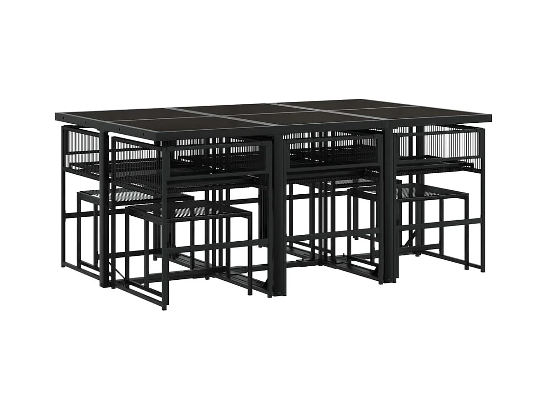 Set da Pranzo da Giardino 11 pz in Polyrattan Nero