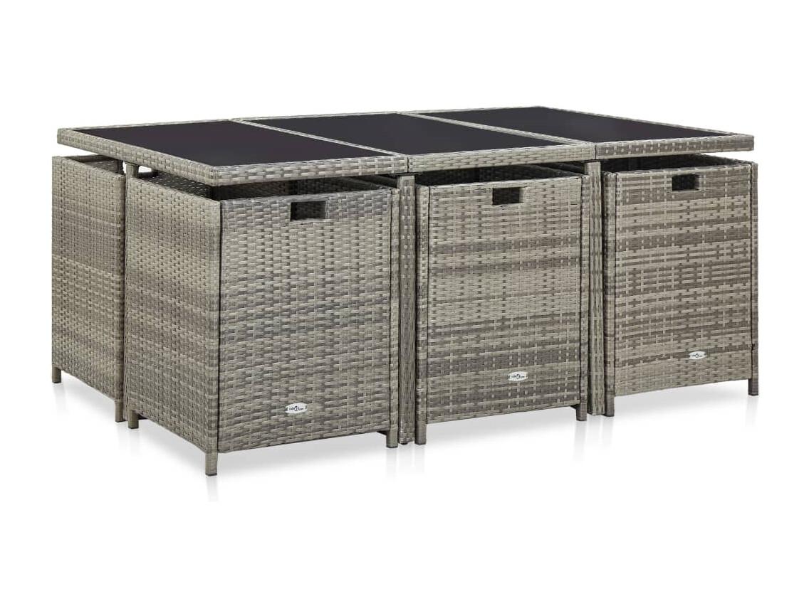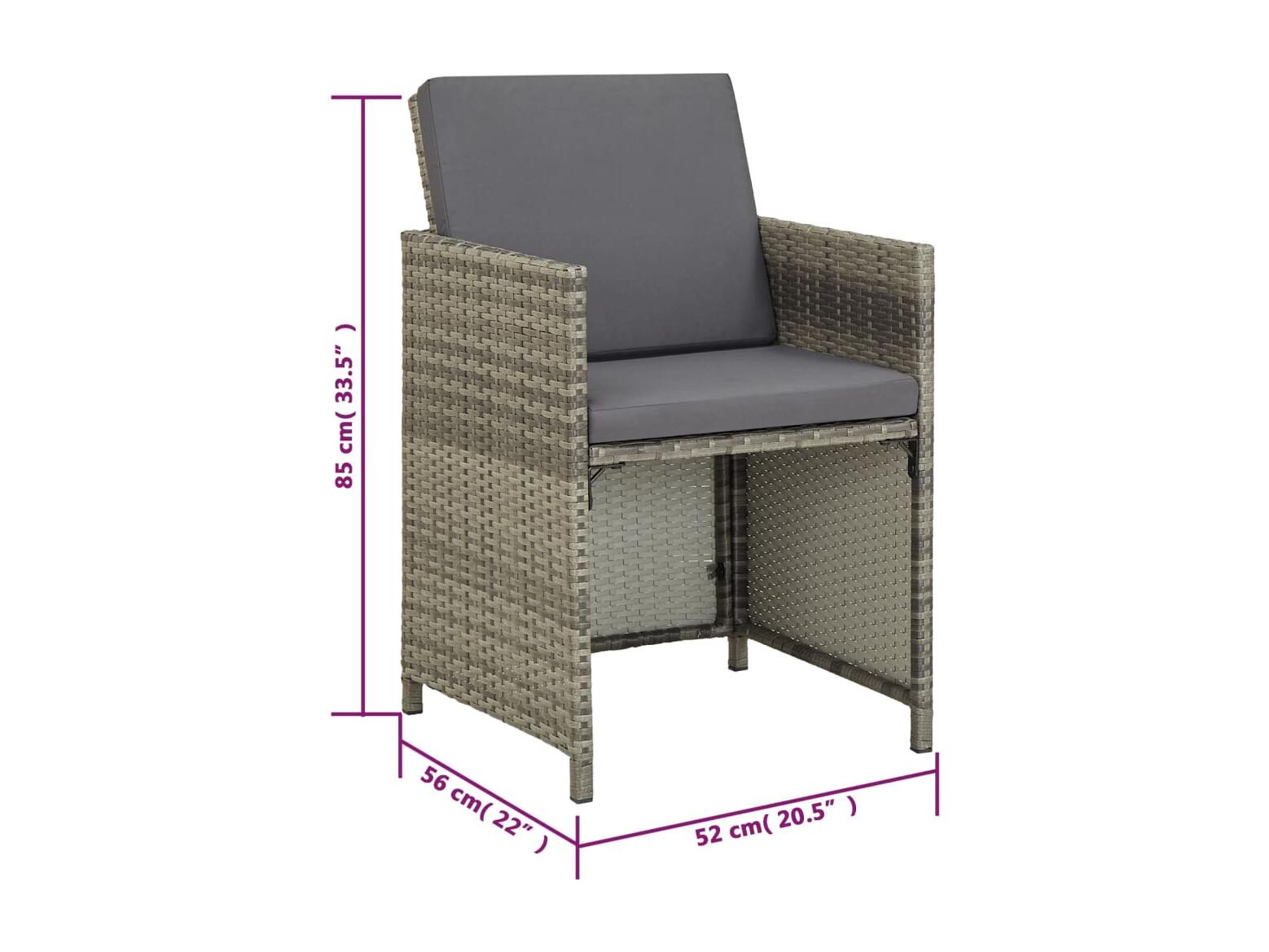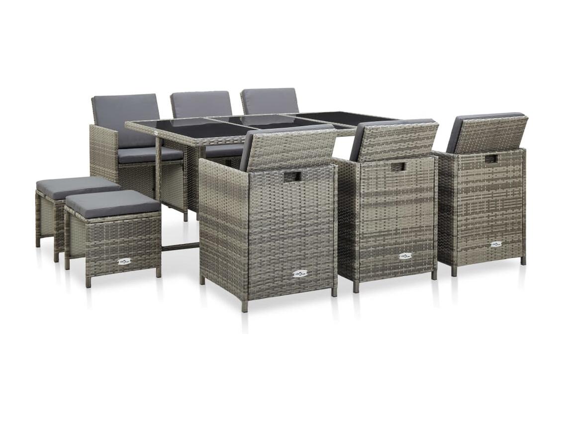 Set da Pranzo da Giardino 11 pz con Cuscini Polyrattan Grigio