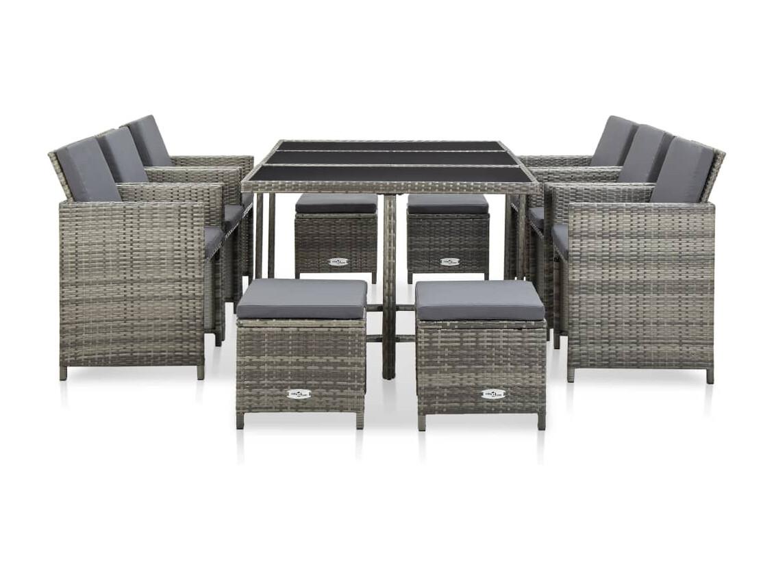 Set Divani da Giardino 11 pz con Cuscini in Polyrattan Grigio