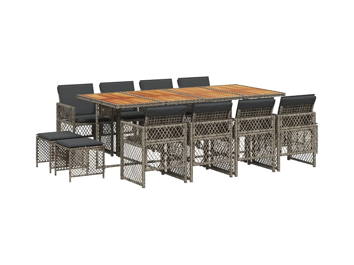 Set da Pranzo da Giardino 13pz con Cuscini Grigio in Polyrattan