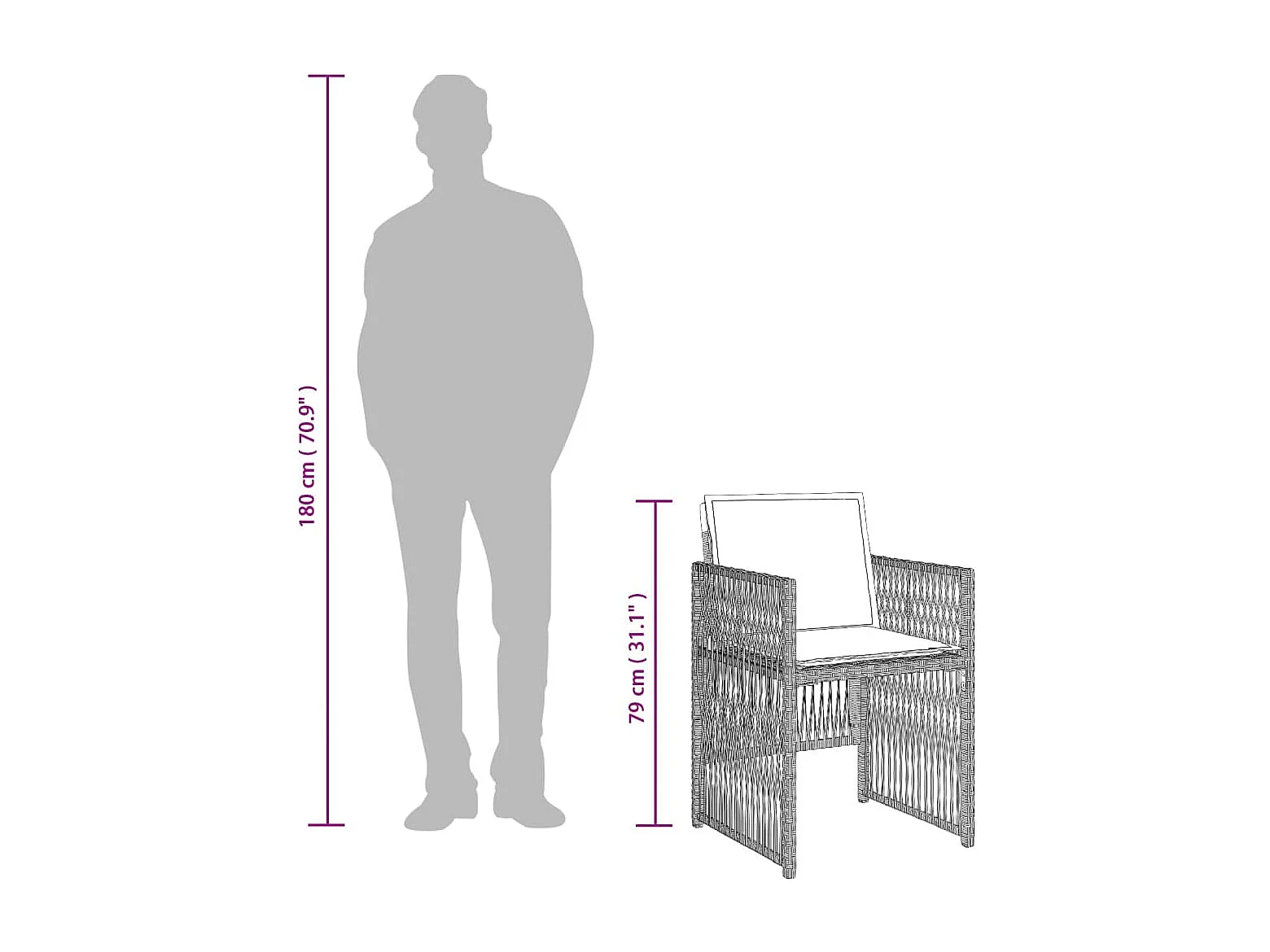 Set da Pranzo da Giardino 15 pz con Cuscini Grigio Polyrattan