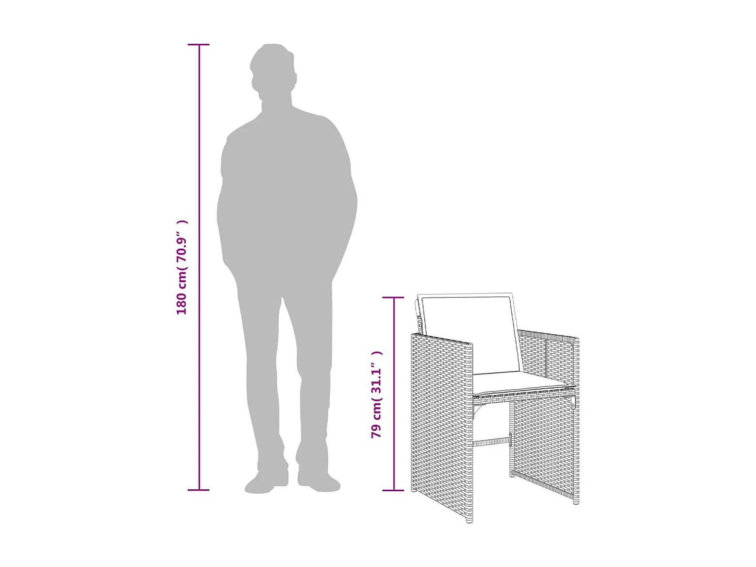 Set da Pranzo da Giardino 13pz con Cuscini Nero in Polyrattan